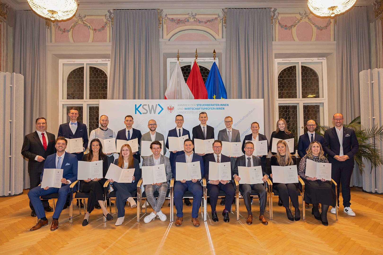 15 SteuerberaterInnen und drei Wirtschaftsprüfer wurden am gestrigen Donnerstag von Wirtschaftslandesrat Mario Gerber im Innsbrucker Landhaus angelobt. Die Angelobten haben damit die Berufsbefugnis erlangt und dürfen darüber hinaus auch eine eigene Kanzlei eröffnen.