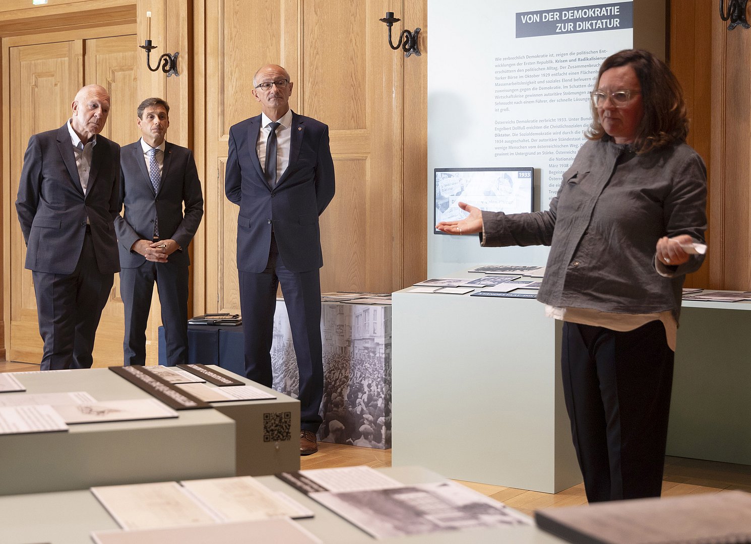 „Heute werden im Landhaus jene Werte gelebt, die der Nationalsozialismus mit Füßen getreten hat: Demokratie, BürgerInnenrechte, Rechtsstaat und Pluralismus. Gerade in der jüngeren Generation ist das schreckliche Ausmaß der Gräueltaten des Nationalsozialismus oftmals nicht mehr präsent. Die in Kooperation mit den Tiroler Landesmuseen entstandene Ausstellung im Landhaus richtet sich deshalb wider das Vergessen und das Schweigen. Dass die Ausstellung in enger Abstimmung mit den beiden KuratorInnen handwerklich großteils durch die Fachabteilungen im Haus umgesetzt wurde, schafft eine besonders enge Identifikation der Ausstellung zu unseren Mitarbeiterinnen und Mitarbeitern“, ergänzte Landesamtsdirektor Forster.