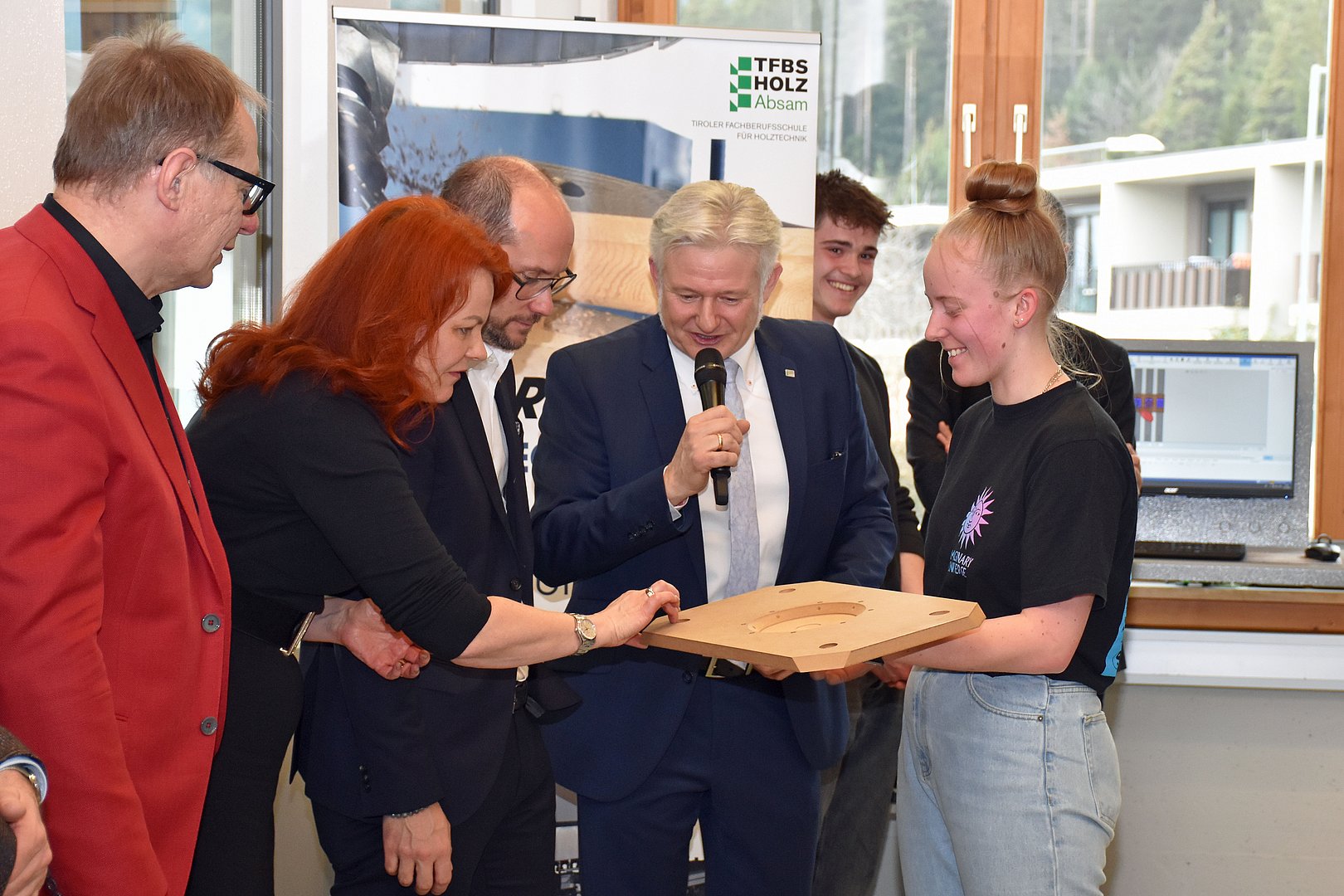 „Die Übergabe der CNC-Maschine zeigt, wie Wirtschaft und Bildung Hand in Hand gehen. Eine gute Ausbildung ist nicht nur Voraussetzung für den persönlichen beruflichen Erfolg, sondern auch für den Erfolg des Wirtschaftsstandortes. Mit dem neuen CNC-Bearbeitungszentrum sind die Schülerinnen und Schüler der TFBS für Holztechnik für die Anforderungen der heimischen Wirtschaft bestens gewappnet“, betont LR Gerber.