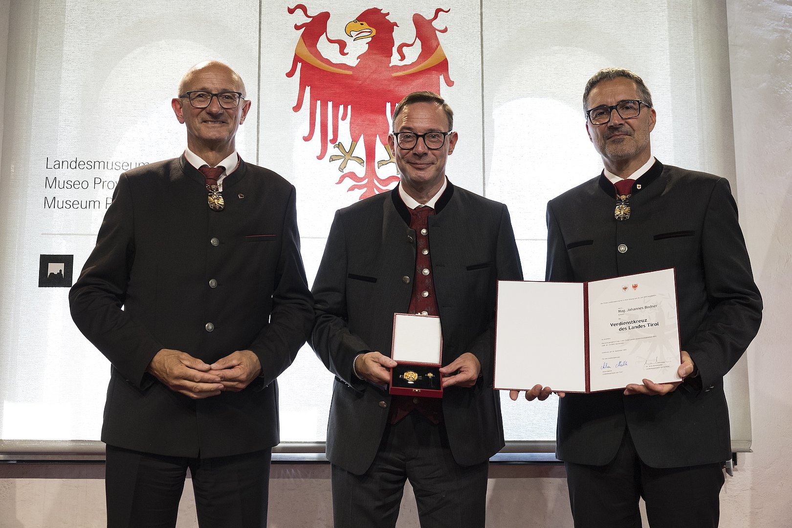 LR a.D. Johannes Bodner aus Kufstein (Bezirk Kufstein) wurde für seine Verdienste um das Gemeinwohl sowie das Bildungswesen, insbesondere um die nachhaltige Weiterentwicklung der FH Kufstein als auch den Tiroler Landesschützenbund mit dem Verdienstkreuz ausgezeichnet.© Land Tirol/Sedlak Bezirksfeuerwehrinspektor Franz Brunner aus Lavant (Bezirk Lienz) wurde für seine Verdienste um das Tiroler Feuerwehrwesen, insbesondere als Bezirksfeuerwehrinspektor in Osttirol, mit dem Verdienstkreuz ausgezeichnet.© Land Tirol/Sedlak