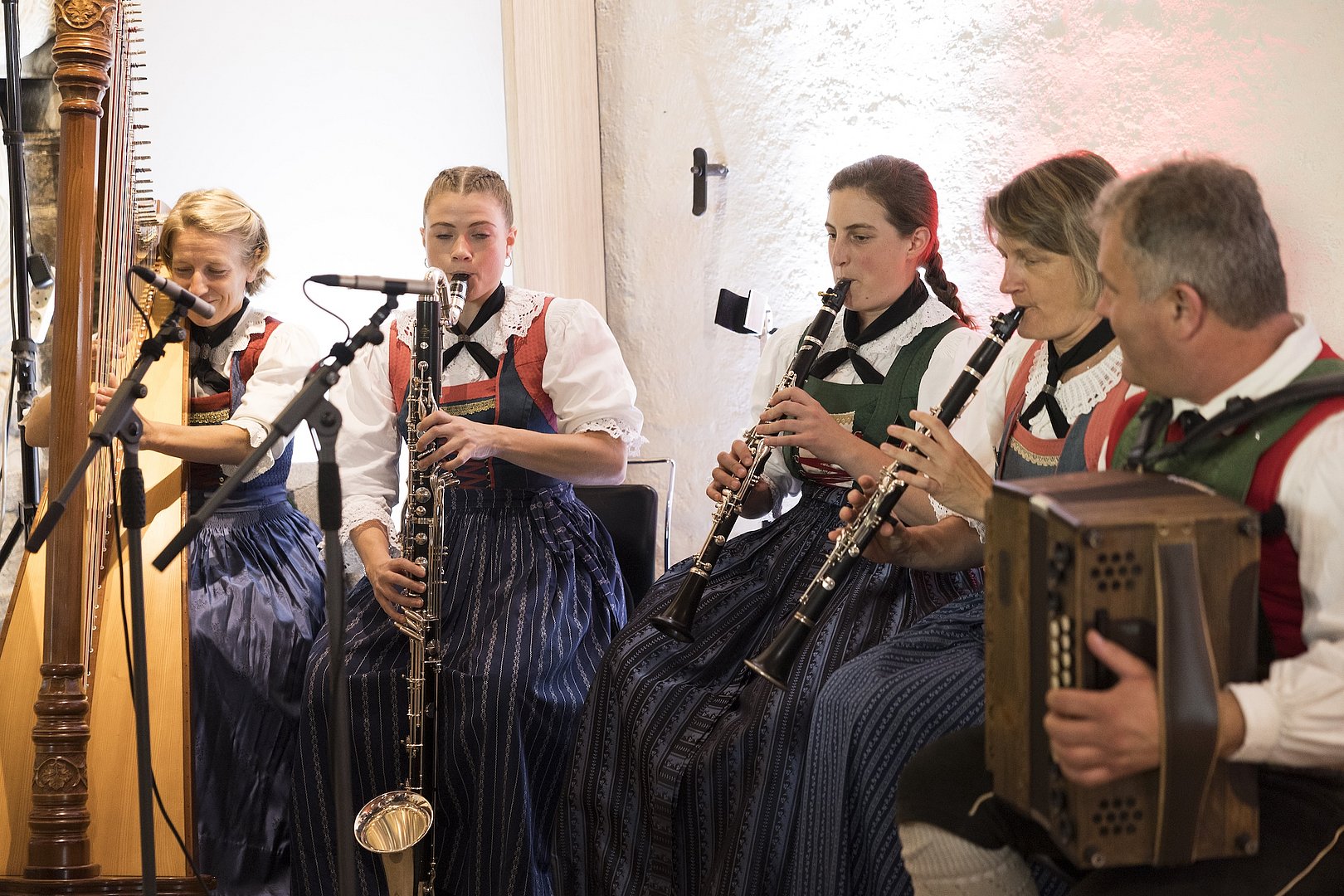 Der Festakt mit feierlicher Verleihung von Verdienstkreuzen im Rittersaal wurde musikalisch von der Malser Klarinettenmusi umrahmt.© Land Tirol/Sedlak