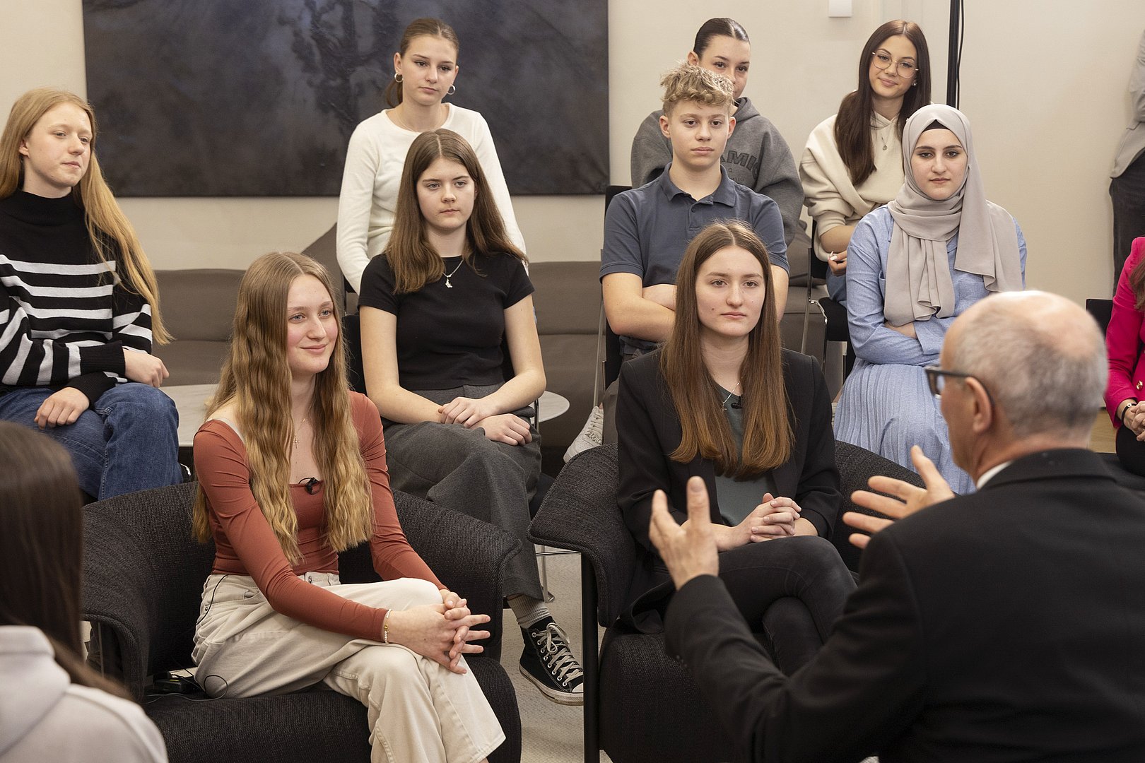 LH Mattle im Gespräch mit SchülerInnen der ersten Klasse HLPS Innsbruck