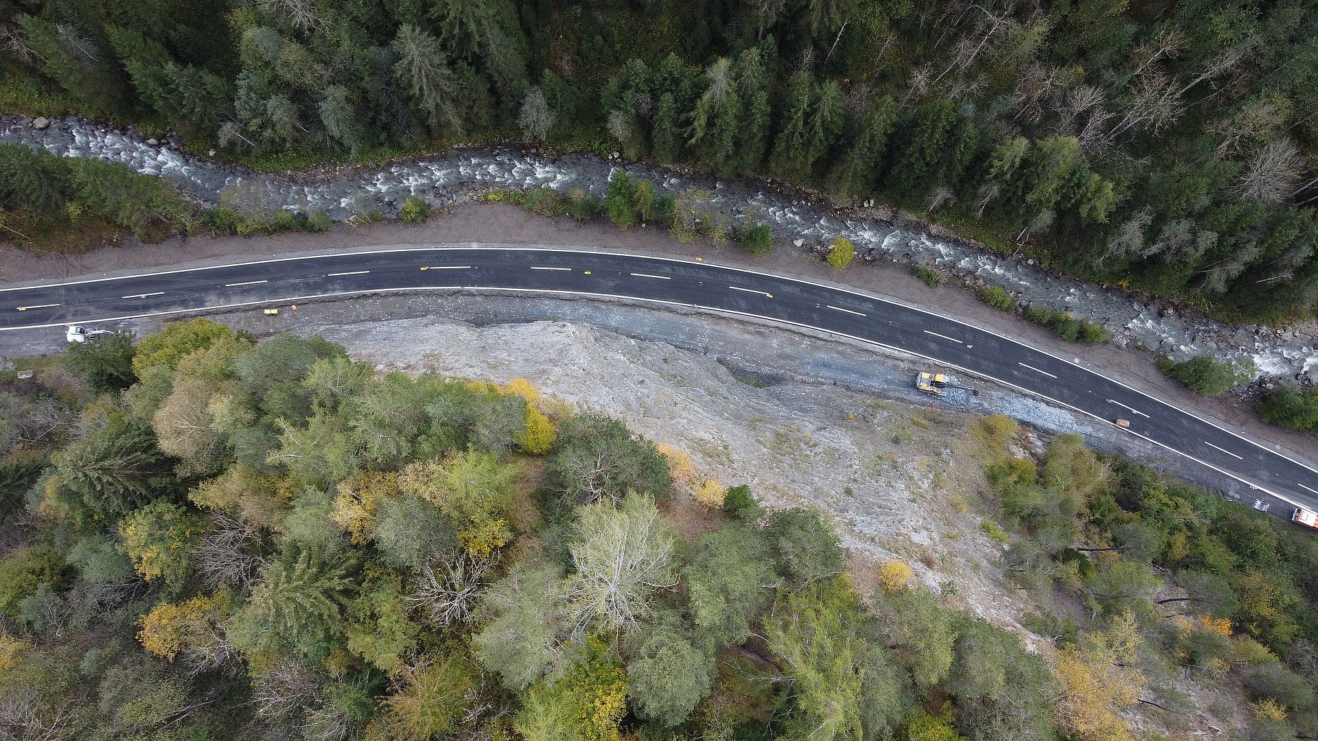 Kurz vor Fertigstellung sind die Baumaßahmen an der L 18 Kaunertalstraße. Im Bereich des Hohen Schrofens wurde die Landesstraße fünf Meter von der 150 Meter hohen Felswand abgerückt und auf einer Länge von knapp 400 Metern neu gebaut. Zum Schutz der VerkehrsteilnehmerInnen wurde bergseitig ein Sturzgraben hergestellt und die Fahrbahn zusätzlich durch Betonleitwände gesichert. „Die L 18 Kaunertalstraße ist eine Nabelschnur für das Kaunertal. Mit der Verlegung der Straße haben wir den Schutz vor Steinschlägen massiv erhöht“, erklärt Geisler.