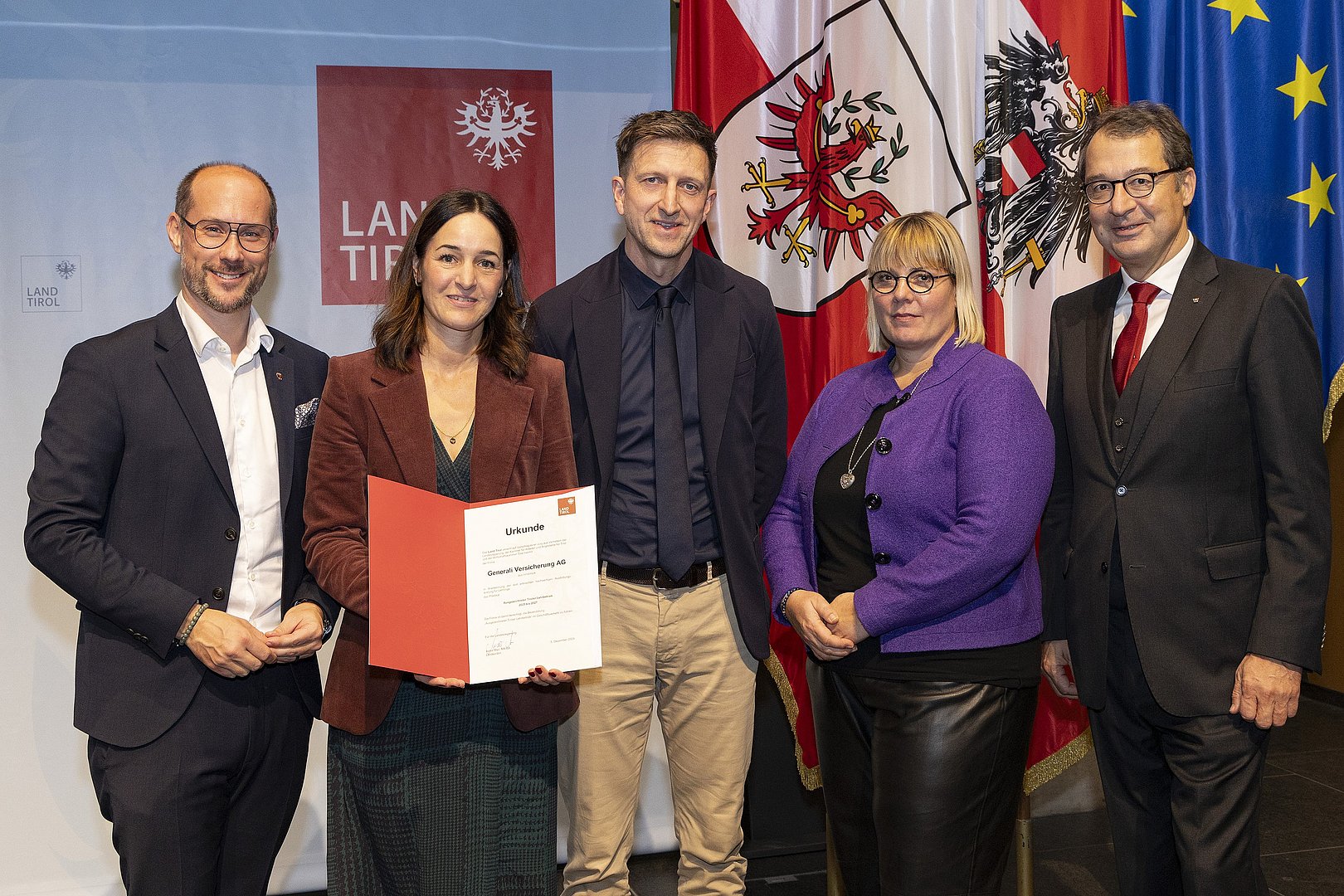 Im Rahmen einer feierlichen Verleihung im Landhaus in Innsbruck gestern, Donnerstagabend, wurden 23 Unternehmen mit dem Prädikat „Ausgezeichneter Tiroler Lehrbetrieb“ erstmalig für die Jahre 2025 bis 2027 von Wirtschaftslandesrat Mario Gerber, Birgit Seidl (Vorstandsmitglied Arbeiterkammer Tirol) und Martin Wetscher (Vizepräsident Wirtschaftskammer Tirol) ausgezeichnet. Für 82 Betriebe wurde die Auszeichnung um weitere drei Jahre verlängert. Derzeit gibt es in Tirol insgesamt 238 ausgezeichnete Lehrbetriebe.