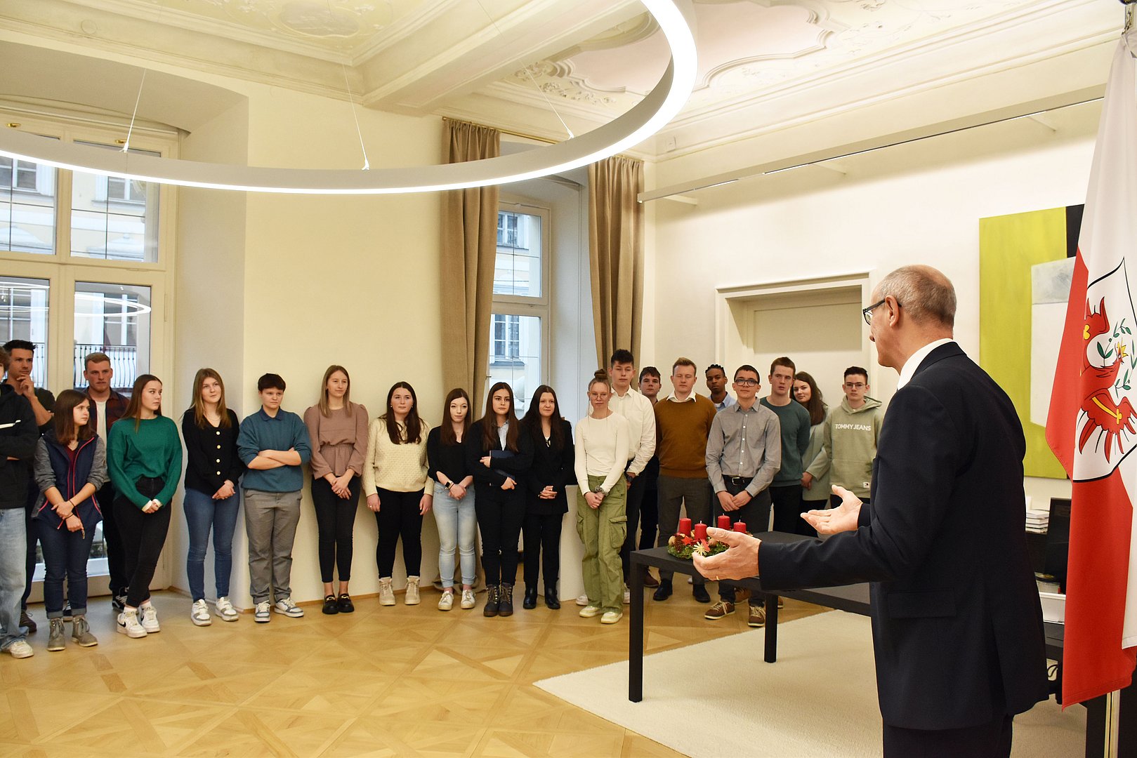 „Ich freue mich, dass wir so viele junge und motivierte Mitarbeiterinnen und Mitarbeiter im Team des Landes Tirol willkommen heißen dürfen. Lehrlinge sind immer eine große Bereicherung, da sie neben ihrem großen Interesse auch frische Ansätze mitbringen. Noch dazu sorgen die Lehrlinge dafür, dass die Landesverwaltung auch in Zukunft ihre Aufträge kompetent und zuverlässig erfüllen kann. Für mich ist es ein wichtiges Anliegen, die neuen Auszubildenden bei uns persönlich zu begrüßen. Ich bedanke mich bei allen Ausbildnerinnen und Ausbildnern für ihren Einsatz und wünsche den Lehrlingen eine spannende und lehrreiche Zeit beim Land Tirol“, betonte LH Mattle