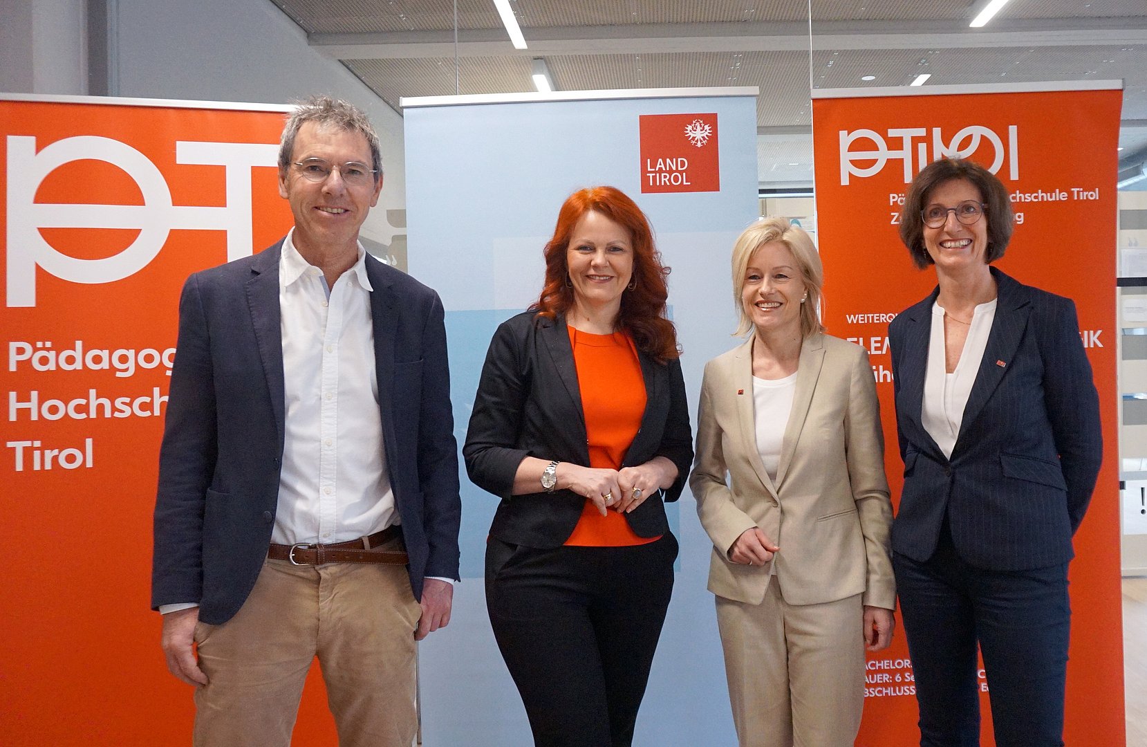 Derzeit sind rund 6.300 PädagogInnen, Assistenzkräfte und Tageseltern in Tirol im Elementarbereich tätig. In Kooperation mit dem Land Tirol bietet die Pädagogische Hochschule Tirol (PH Tirol) ein umfassendes und kostenloses Fort- und Weiterbildungsangebot für das Personal in Kinderkrippen, Kindergärten und Horten sowie ab Sommersemester 2024 auch für Tageseltern an. Dafür wird seitens des Landes insgesamt 1,6 Millionen Euro für die Jahre 2024 bis 2027 zu Verfügung gestellt. Am neu implementierten Institut für Elementarpädagogik an der PH Tirol werden zudem seit März 2024 die Kompetenzen rund um Forschung, Fort- und Weiterbildung für elementarpädagogische Einrichtungen und andere pädagogische Berufsfelder gebündelt. Völlig neu ist die Möglichkeit, sich an der PH Tirol auch im Quereinstieg für die Elementarpädagogik ausbilden zu lassen. Gemeinsam präsentierten Bildungslandesrätin Cornelia Hagele, Rektorin der PH Tirol Regine Mathies sowie Daniela Klingler, Leiterin des Instituts für Elementarpädagogik und Hochschulprofessor Bernhard Koch heute, Donnerstag, das umfassende Aus-, Fort- und Weiterbildungsangebot an der Pädagogischen Hochschule Tirol.