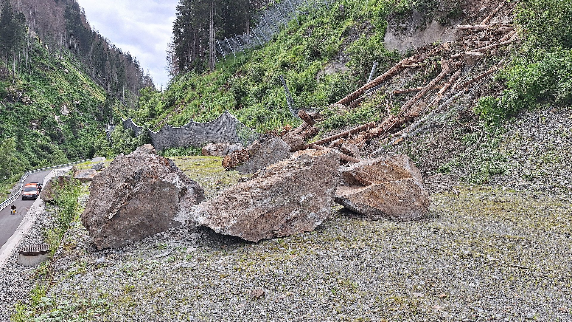 Feuertaufe bestanden: Vor einem Jahr wurden die Moosergraben- und Mellitzgrabengalerie im Osttiroler Defereggental feierlich eröffnet, um die L 25 Defereggentalstraße noch besser vor Naturereignissen zu schützen. Die neuen Galerien zeigen Wirkung: Kürzlich ereigneten sich oberhalb der Mellitzgrabengalerie zwei Felsstürze. Die neue Galerie konnte die bis zu fünf Kubikmeter großen und 13 Tonnen schweren Felsbrocken aufhalten und verhinderte somit eine Sperre der Landesstraße.