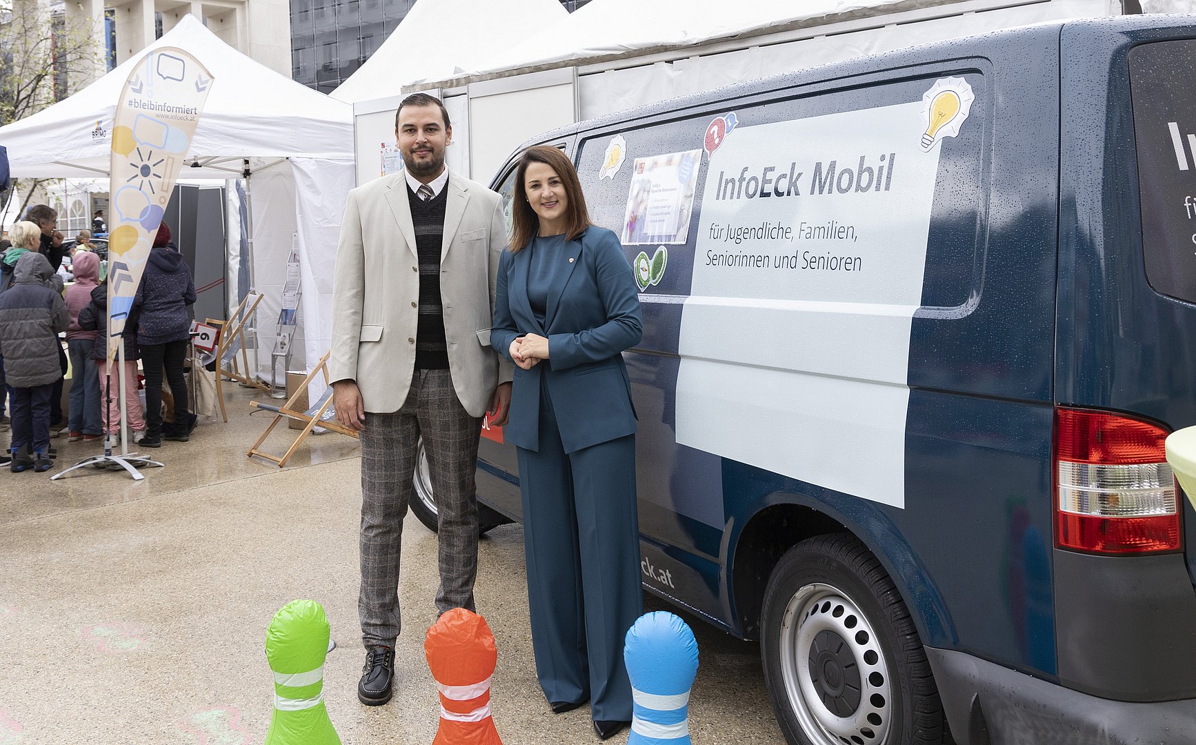 Das InfoEck Mobil ist ein mobiler Informationsbus, den man im Zuge von Veranstaltungen beispielsweise von Gemeinden oder Vereinen für Jugendliche, Familien und SeniorInnen buchen kann. Je nach Veranstaltung wird das Angebot an die Gegebenheiten und Zielgruppen angepasst. Für unverbindliche Buchungsanfragen steht ein Online-Formular unter www.infoeck.at/infoeck-mobil zur Verfügung. Um eine bestmögliche Planbarkeit zu gewährleisten, müssen Anfragen bis spätestens einen Monat vor Veranstaltungsbeginn gestellt werden.