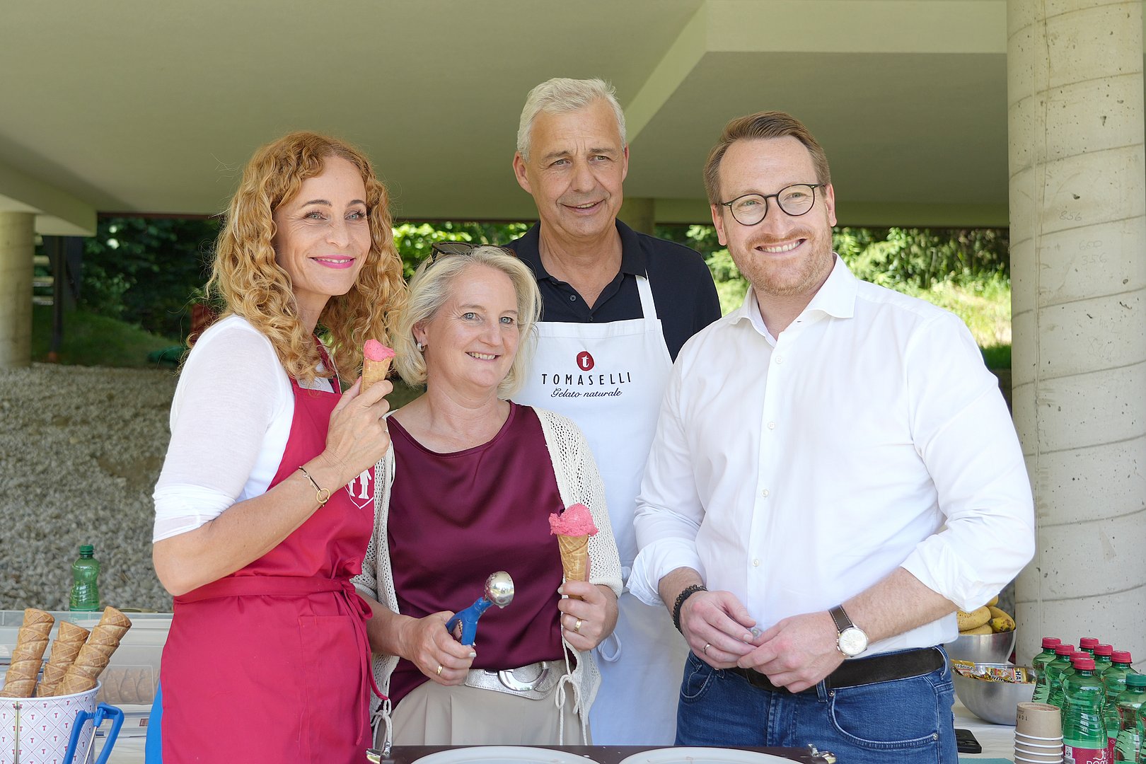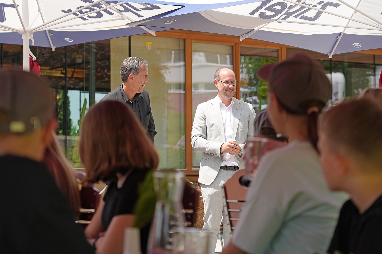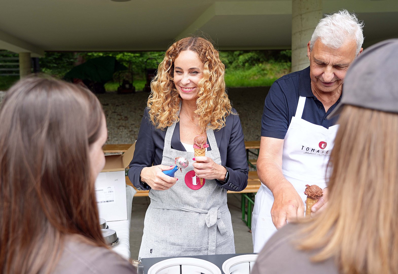 Auch LHStv Philip Wohlgemuth und LRin Eva Pawlata waren auf der Hungerburg zu Gast und sorgten bei einer „Eisparty“ gemeinsam mit Thomas Weber, Geschäftsführer der „Gelateria Tomaselli“, für strahlende Kinderaugen. LR Mario Gerber schaute beim Restaurant Garda in Kranebitten zur „Pizzaparty“ persönlich vorbei und trat mit den ukrainischen Kindern in den Austausch. Auch Landesamtsdirektor Herbert Forster machte sich gemeinsam mit dem Honorarkonsul der Ukraine in Tirol, Walter Peer, ein Bild vom Campgeschehen.