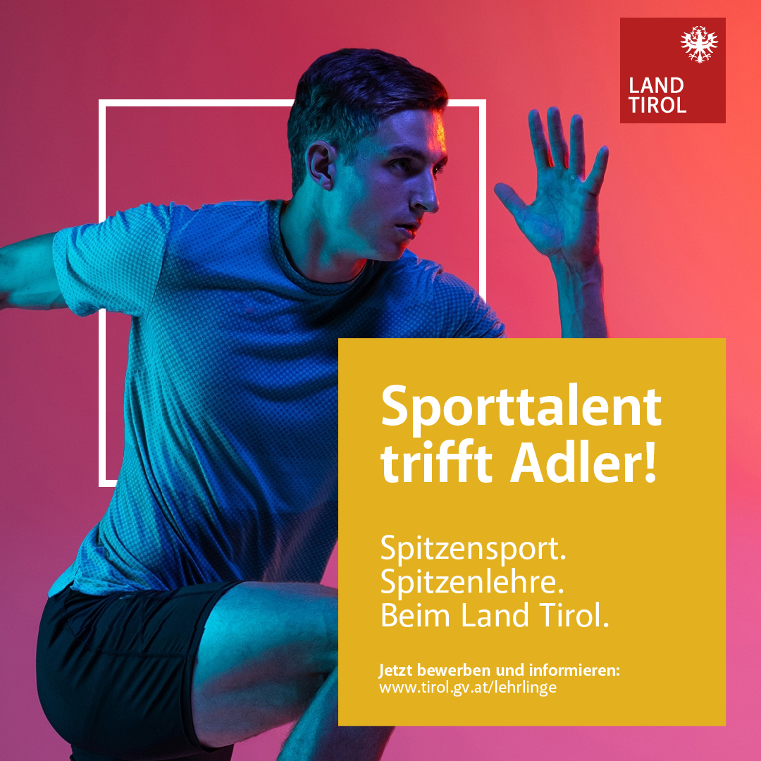 Ab sofort wird zudem die „Lehre mit Sport“ beim Land Tirol gefördert. Das heißt: Die Lehrzeit wird einfach um jene Zeit verlängert, die ein Lehrling sportbedingt wie für Trainings oder Wettkämpfe im Einsatz war, maximal jedoch um bis zu 18 Monate. Die „Lehre mit Sport“ kann derzeit in Verbindung mit dem Lehrberuf Bürokauffrau/-mann absolviert werden. Die Lehrzeit im Lehrberuf Bürokaufmann beträgt durch die Verlängerung vier statt drei Jahre. Zudem wird die „Lehre mit Sport“ als Teilzeitlehre, das heißt mit einem Beschäftigungsausmaß von 32 statt 40 Stunden pro Woche, angeboten. Darüber hinaus erhalten die Lehrlinge für Trainingslager bzw. Wettkämpfe einen Sonderurlaub im Ausmaß von 32 Stunden pro Kalenderjahr – das entspricht einer zusätzlichen Woche Urlaub bei einem Beschäftigungsausmaß von 80 Prozent. Dabei setzt das Land auf eine enge Zusammenarbeit mit Sportverbänden und -vereinen, Schulen sowie dem Förderverein Nachwuchsleistungssport Tirol.
