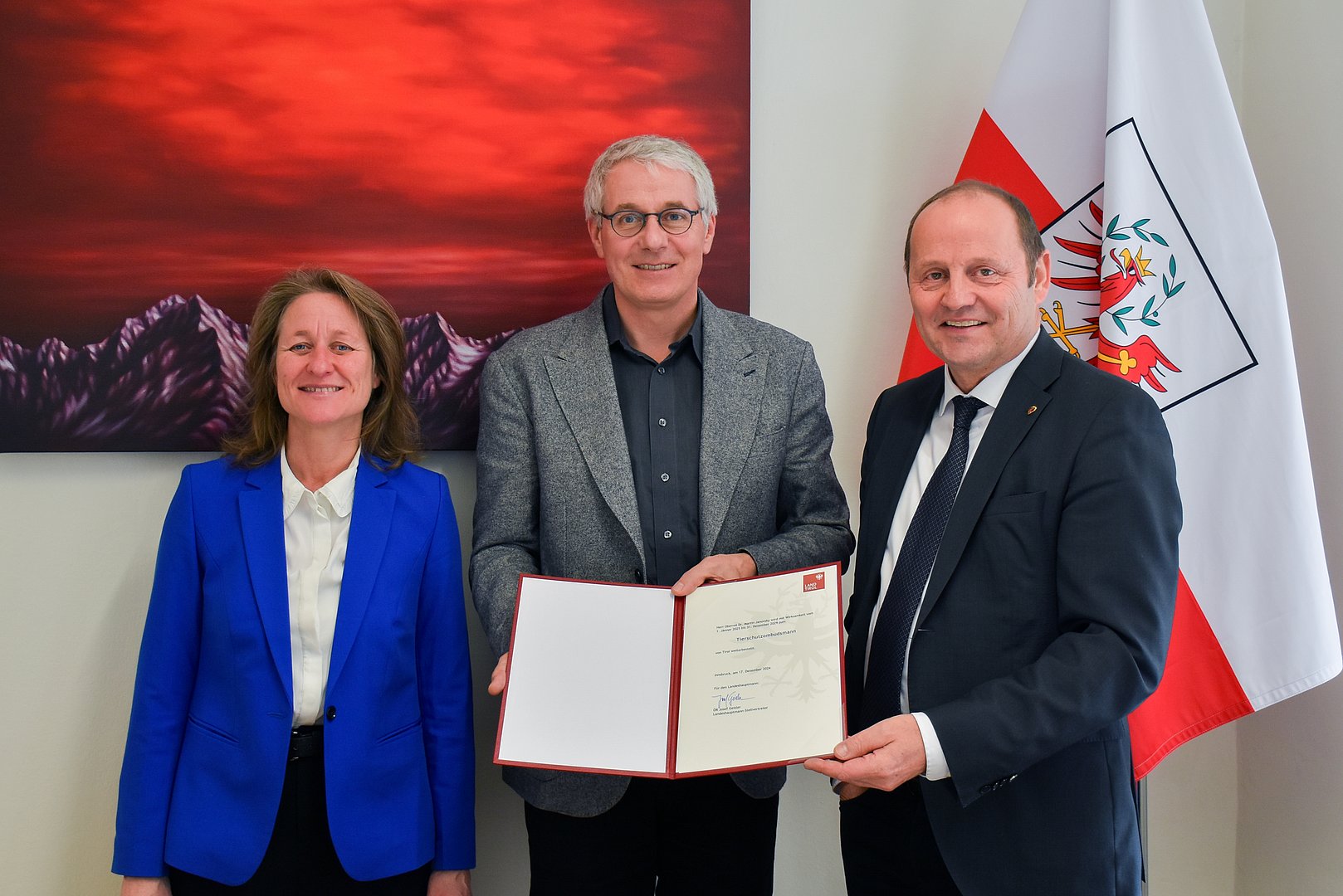 Auf Beschluss der Tiroler Landesregierung hat LHStv Josef Geisler Amtstierarzt Martin Janovsky, von der Landesveterinärdirektion, zum fünften Mal in Folge als Tierschutzombudsperson für Tirol wiederbestellt. Seine Amtszeit beginnt mit 1. Jänner 2025 und erstreckt sich über weitere fünf Jahre. Aufgabe der Tierschutzombudsperson ist es, die Interessen des Tierschutzes als Amtspartei in Verfahren nach dem Tierschutzgesetz und seit 1. Jänner 2023 auch in Verfahren nach dem Tiertransportgesetz zu vertreten. Martin Janovsky übt diese Funktion zusätzlich zu seiner Tätigkeit als Amtstierarzt aus.