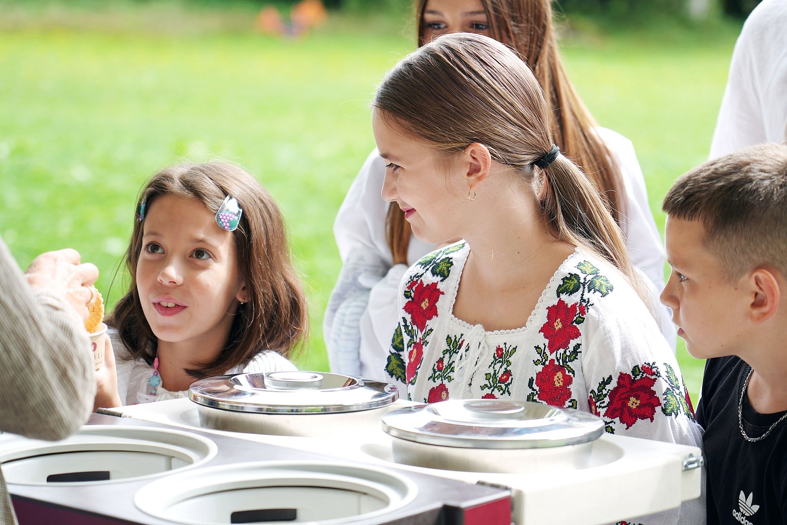 Gemeinsam mit anderen Kindern die letzten Sommertage genießen, unbeschwerte Momente erleben und die Sorgen des Kriegsalltags für kurze Zeit ausblenden – das Ukraine-Sommercamp auf der Innsbrucker Hungerburg macht dies für mehr als 60 Kinder und Jugendliche aus der Ukraine möglich. Besuch erhielten die Acht- bis Sechzehnjährigen kürzlich von Soziallandesrätin Eva Pawlata und Landesamtsdirektor Herbert Forster. Besonderes Highlight an diesem Tag: Für strahlende Kinderaugen sorgte Thomas Weber, Geschäftsführer der „Gelateria Tomaselli“ in Innsbruck, der fruchtige Eis-Köstlichkeiten an die TeilnehmerInnen des Sommercamps verteilte.