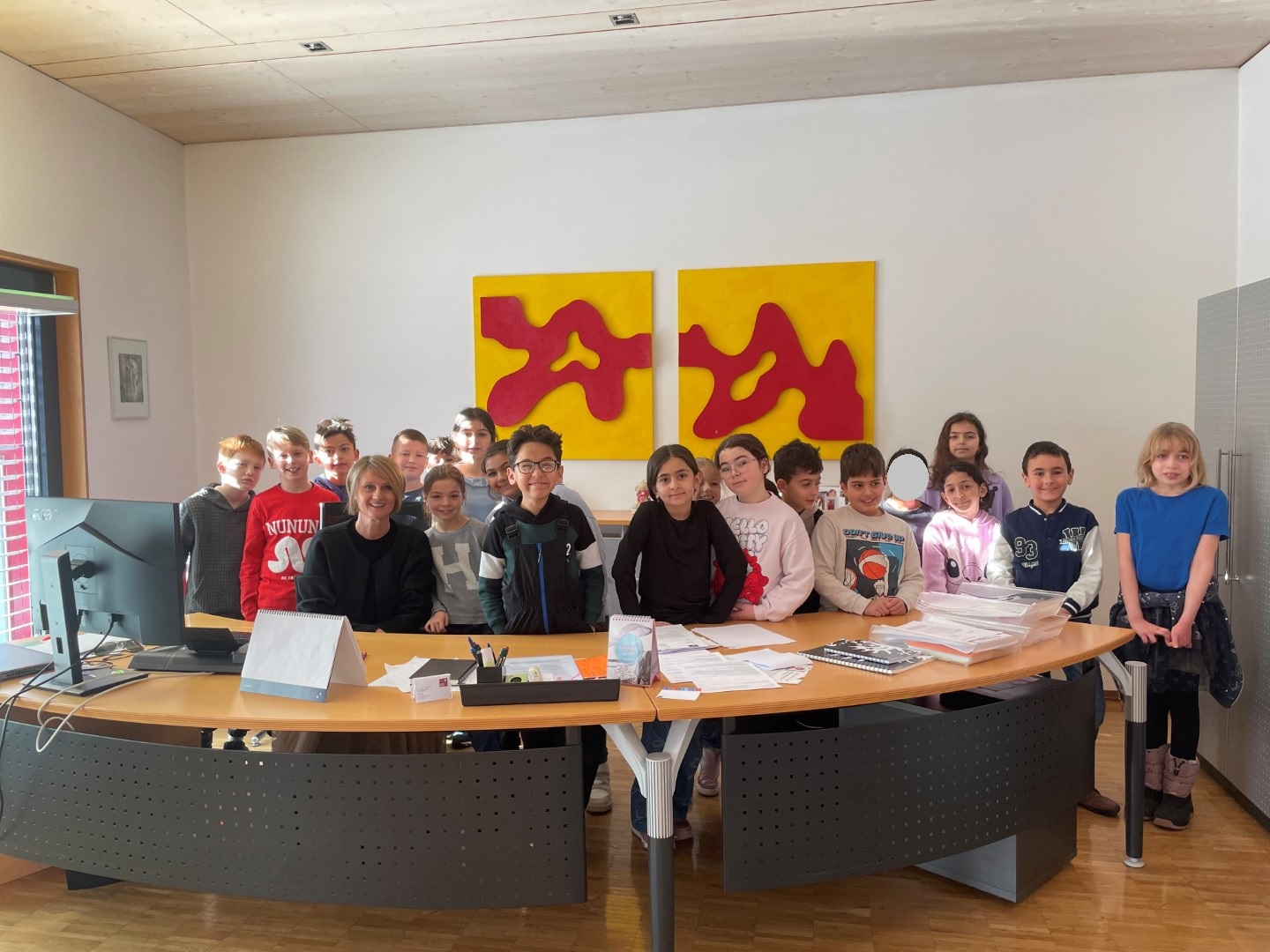 Wir haben das Bürgerservice angeschaut und haben Fingerabdrücke gemacht. Die Ausdrucke durften wir als Erinnerung mitnehmen. Danach hat uns Herr Schautzgy über Zivil- und Katastrophenschutz informiert und wir haben gefunkt. Unsere Funknamen waren „Löwe“ und „Katze“.