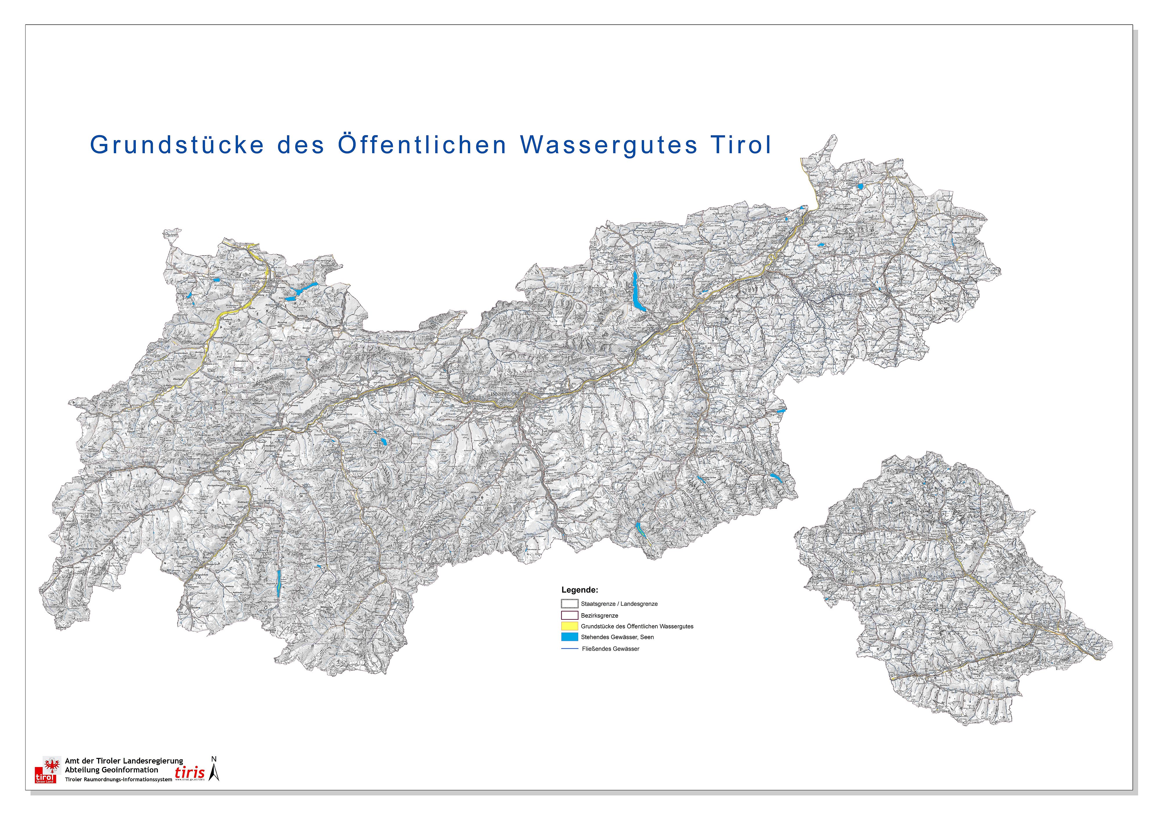 Über den tiris Kartendienst Öffentliches Wassergut in Tirol können Sie nähere Informationen über die Liegenschaften des Öffentlichen Wassergutes einsehen.