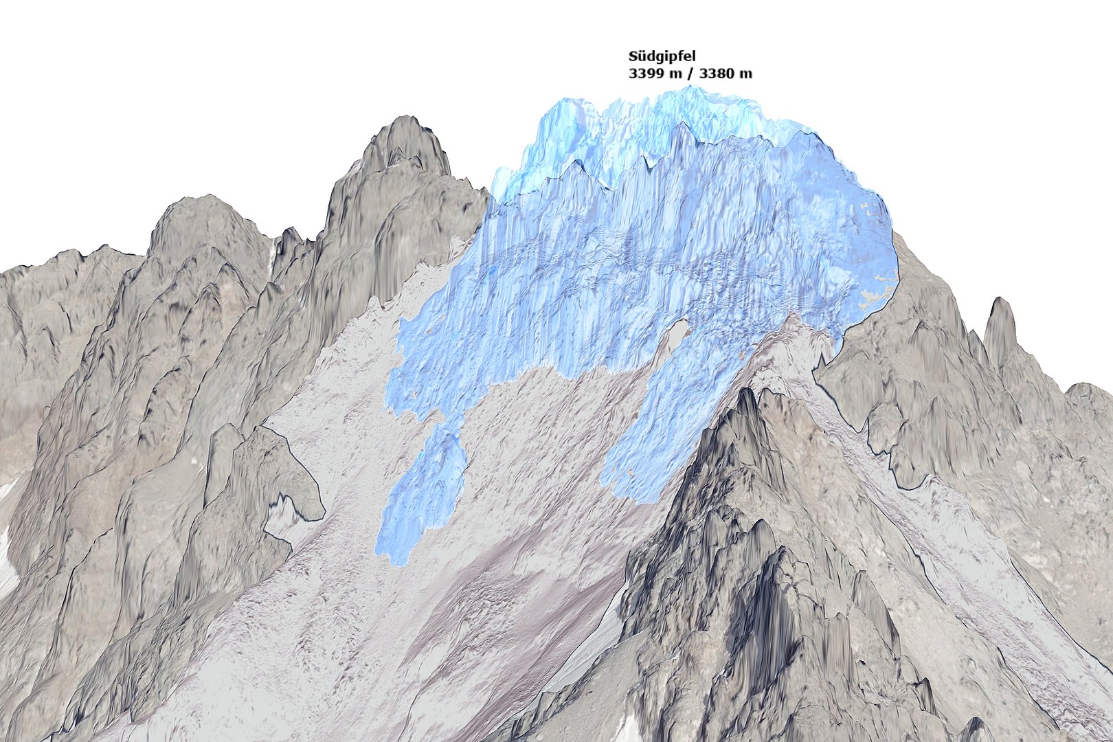 Weitere Visualisierungen des Südgipfels des Fluchthorns nach den Messungen mittels Laser-Scanning.