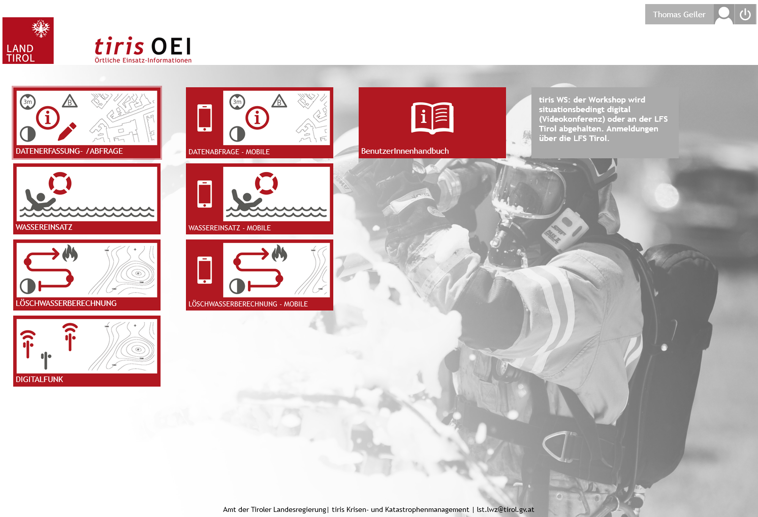 Das Land Tirol stellt den Tiroler Feuerwehren ein einheitliches geographisches Informationssystem (webGIS) zur Datenerfassung und Datenabfrage von katastrophen- und feuerwehrrelevanten Einsatzinformationen zur Verfügung.
