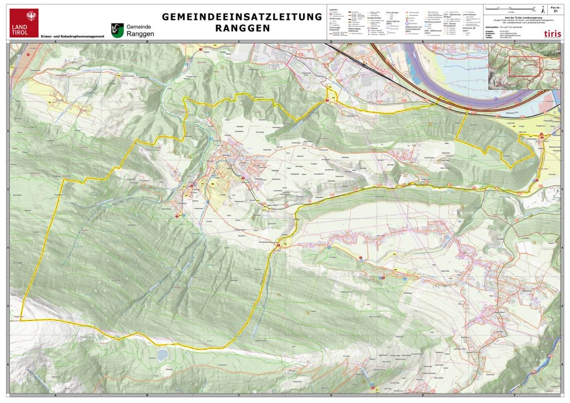 Auf Anforderung können von der tiris Station der Gruppe des Tiroler Zentrums für Krisen- und Katastrophenmanagement Kartenprodukte bis zum Format A0 ausgegeben werden. Dieses Angebot richtet sich im Speziellen an die Tiroler Feuerwehren sowie die die Bezirks- und Gemeinde-Einsatzleitungen und die Tiroler Lawinenkommissionen.