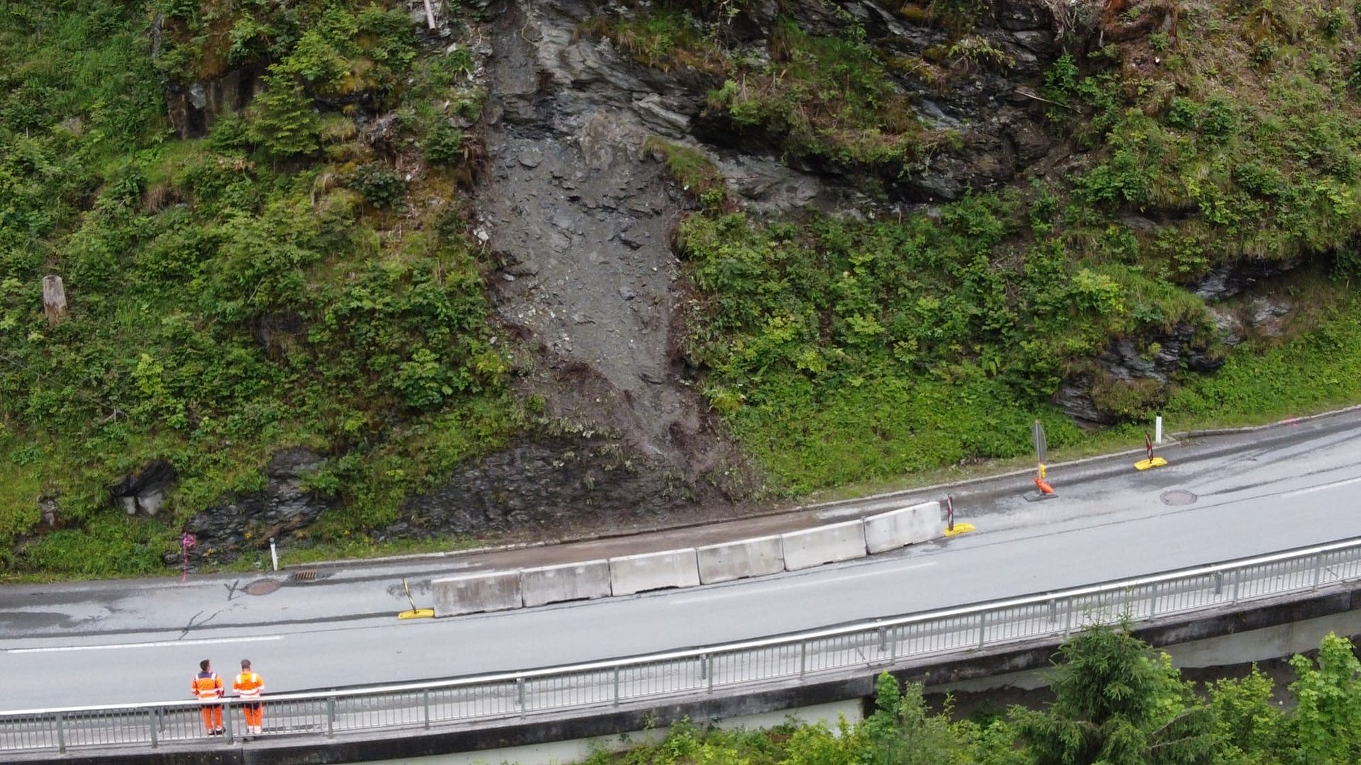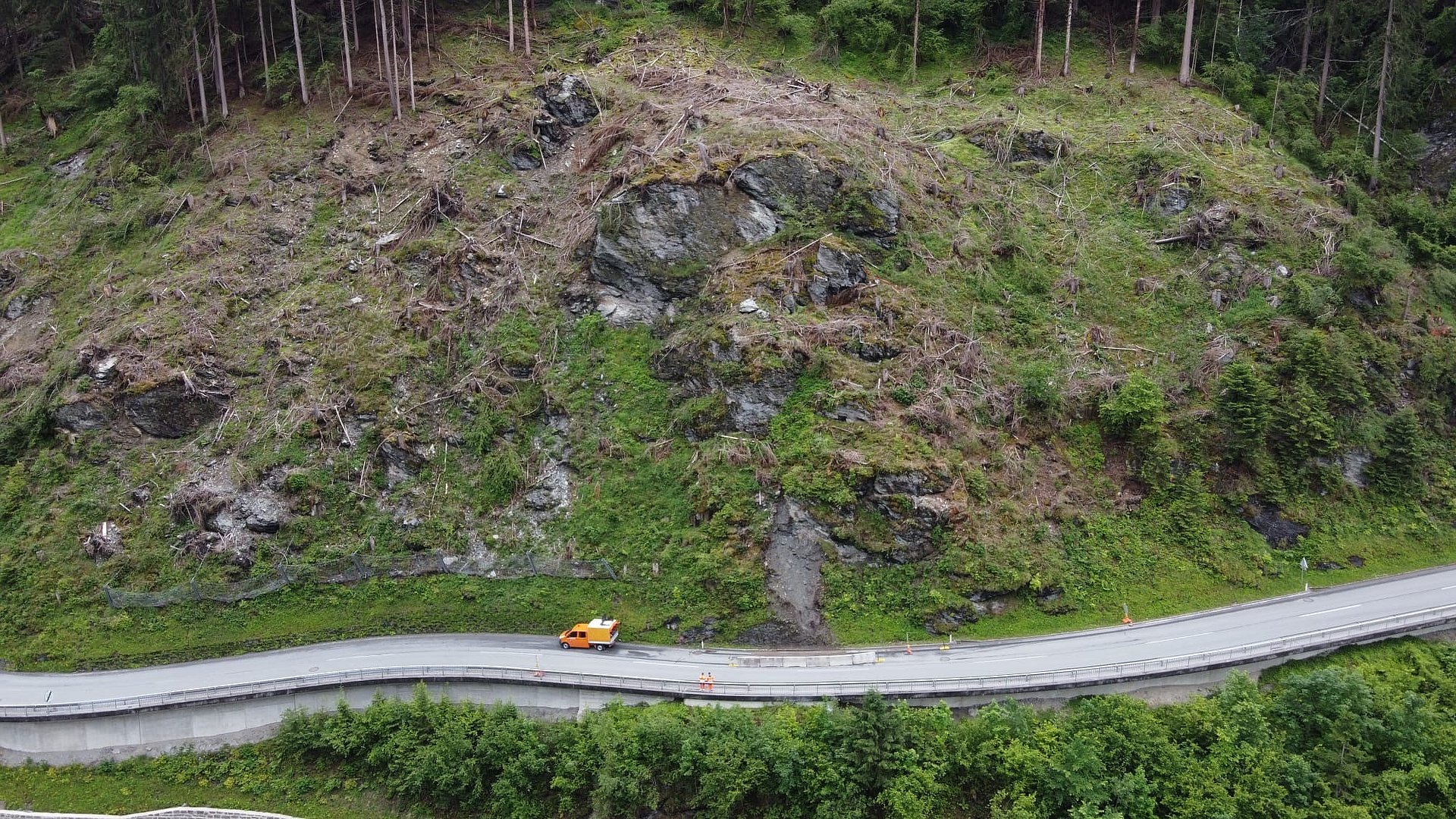 „Für die kurzfristige Sicherung des geöffneten Fahrstreifens haben wir bereits Abräumarbeiten durchgeführt und Betonleitwände aufgestellt. Damit wird verhindert, dass nachrollendes Material auf den Fahrstreifen gelangt. Langfristig errichten wir zudem eine rund 600 Quadratmeter große Vernetzung. Erst wenn diese errichtet ist, können beide Fahrstreifen der Straße freigegeben werden“, erklärt Landesgeologe Johannes Schroll. Die Arbeiten werden mehrere Wochen in Anspruch nehmen.