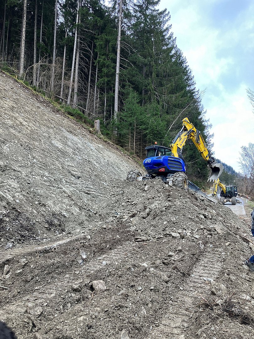 Parallel zu der Fertigstellung der temporären Sicherungsmaßnahmen und der finalen Aufräumarbeiten laufen bereits die Planungen für die dauerhafte Hangsicherung. Dazu werden voraussichtlich im Laufe der kommenden Woche die Arbeiten starten. „Der bergseitige Hang wird zur dauerhaften Sicherung mit Netzen gesichert. Im Zuge der Arbeiten kann es untertags zu temporären Sperren kommen“, informiert Stigger.