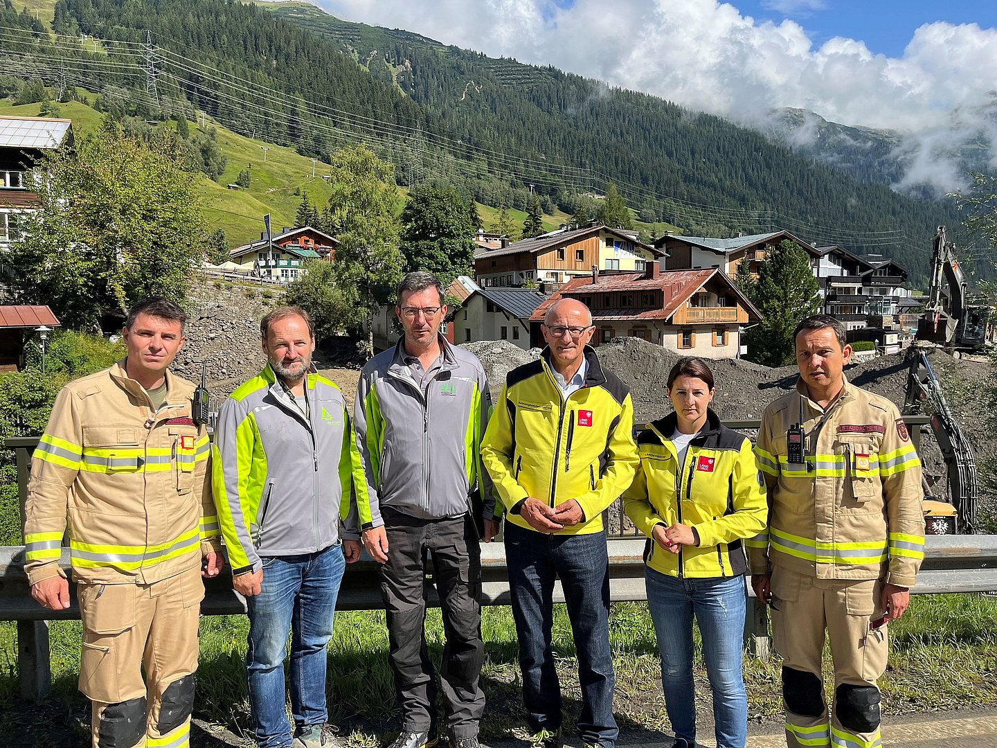 LH Anton Mattle und Sicherheitslandesrätin Astrid Mair waren heute Vormittag vor Ort in der Gemeinde St. Anton am Arlberg, um sich ein Bild der Lage zu machen und den Einsatzkräften vor Ort zu danken. „Zunächst sind wir alle sehr erleichtert, dass kein Mensch bei den gestrigen Unwettern zu Schaden gekommen sind – das ist das wichtigste. Dennoch ist nach dem gestrigen Starkregen ein enormer Sachschaden entstanden: Autos wurden weggespült, Keller überflutet, Gebäude durch Erdrutsche beschädigt. Wir beobachten die Wettersituation auch in den nächsten Stunden und Tagen ganz genau. Im Namen des Landes Tirol möchten wir uns bei allen Einsatzkräften bedanken, die seit gestern in der Nacht im Einsatz sind und auch in den kommenden Stunden und Tagen weiterhin alles geben werden“, so LH Mattle, der zudem ausführt: „Für all jene, die Hab und Gut verloren haben oder Schäden an ihren Gebäuden verzeichnen müssen, bieten wir Unterstützung an. Mit dem Katastrophenfonds können wir bei solchen Schäden nach Elementarereignissen zielgerichtete finanzielle Hilfe leisten.“