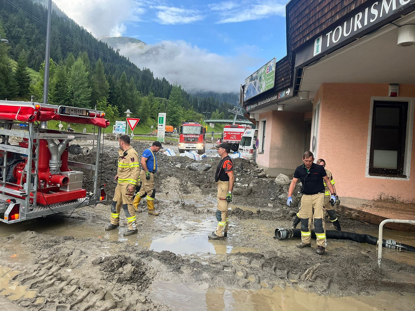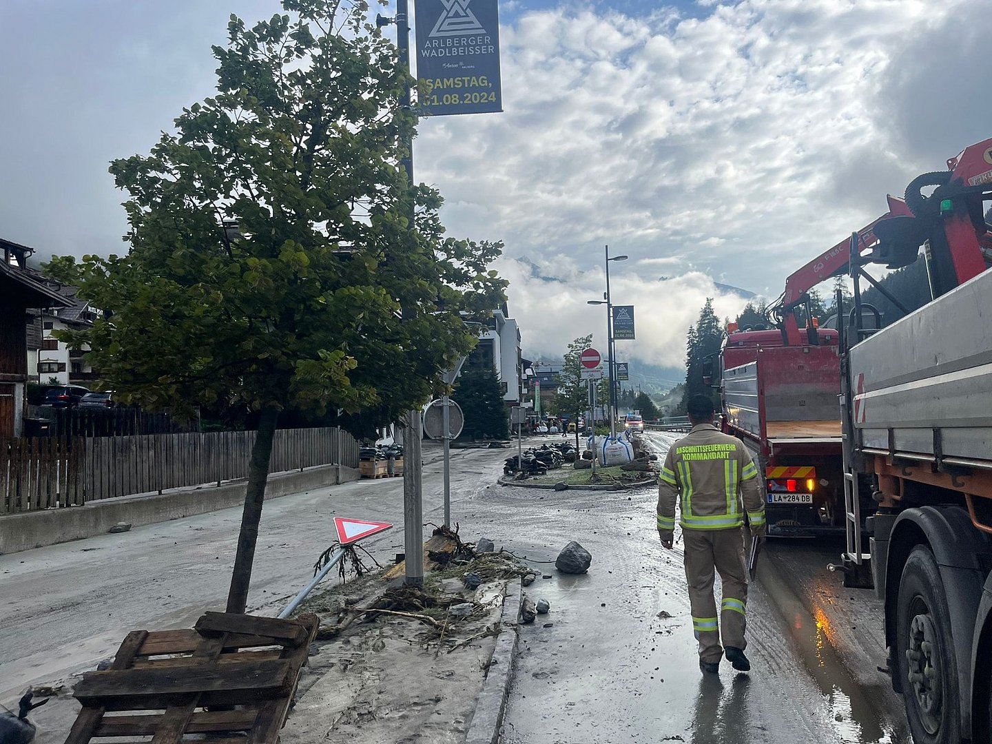 Insgesamt an 26 Schadensstellen wird aktuell gearbeitet“, erklärt der Bürgermeister von St. Anton am Arlberg, Helmut Mall: „Zum Einsatz kommt dabei auch schweres Gerät – etwa Bagger und Lkw – mit denen die Erdmassen der Muren abtransportiert werden. Dabei müssen vor allem die Geschiebebecken ausgeräumt werden, um ihre Schutzfunktion für weitere mögliche Unwetter nicht zu verlieren. Zudem pumpen wir zahlreiche Keller aus.“