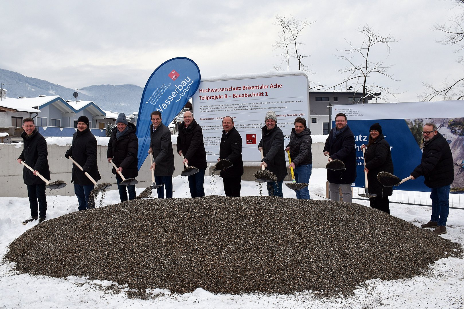 Bauherr für das Vorhaben ist der Hochwasserschutzverband Brixentaler Ache. Mitglieder des Verbandes sind neben den sieben Gemeinden auch mehrere zentrale Infrastrukturträger: die Landesstraßenverwaltung, die TIWAG, die ÖBB sowie die Stadtwerke Wörgl. Christian Sandbichler, Obmann des Hochwasserschutzverbandes Brixentaler Ache bedankt sich für die gute Zusammenarbeit aller Beteiligten: „Hochwasserschutz endet nicht an Gemeindegrenzen. Dieses Projekt ist ein starkes Zeichen für die gute Zusammenarbeit aller beteiligten Gemeinden und Infrastrukturträger sowie Land Tirol und Bund. Gemeinsam schaffen wir wirksame Schutzmaßnahmen entlang der gesamten Brixentaler Ache und sorgen dafür, dass Hochwasser kontrolliert und sicher abgeführt werden kann.“ Die Kosten für den ersten Bauabschnitt belaufen sich auf rund 12,2 Millionen Euro und werden gemeinsam von Bund, Land und Hochwasserschutzverband getragen.
