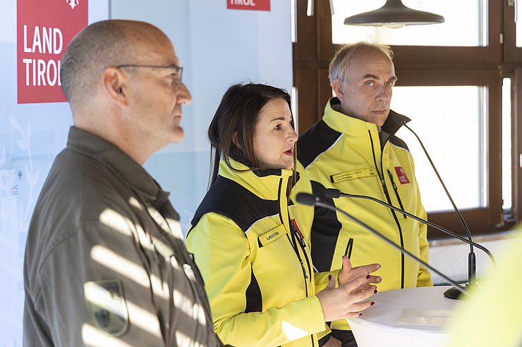 Im Fokus der „Strahlex.23“ stand neben den konkreten Abläufen im Falle eines radiologischen Vorfalls insbesondere die Zusammenarbeit zwischen Behörden und Einsatzorganisationen. „Krisen- und Katastrophenmanagement funktioniert nur im Netzwerk: Je besser alle Akteurinnen und Akteure im Vorfeld abgestimmt sind, desto rascher und effizienter können im Ernstfall Strahlenschutzmaßnahmen umgesetzt werden. Übungen wie heute stärken die Vernetzung untereinander und tragen somit zur Sicherheit der Bevölkerung bei. Gleichzeitig möchten wir die Gelegenheit nutzen, um die Bevölkerung transparent über mögliche Gefahren aufzuklären und für den Zivilschutz zu sensibilisieren“, erklärt LRin Mair. Dem pflichtet auch Militärkommandant Gstrein bei: „Voraussetzung für eine gut funktionierende Bewältigung unterschiedlichster Szenarien ist eine enge Abstimmung aller Beteiligten. Gleichzeitig gilt es, die entsprechenden Notfallpläne griffbereit in der Schublade zu haben und diese regelmäßig zu beüben. Als Österreichisches Bundesheer sind wir dem Schutz der Bevölkerung verpflichtet. Die ‚Strahlex.23‘ ist eine passende Gelegenheit, die konkreten Vorgänge in Folge von Strahlenbelastung durchzuspielen, mögliche Schwachstellen in den Abläufen zu identifizieren und diese für die Zukunft zu beheben.“