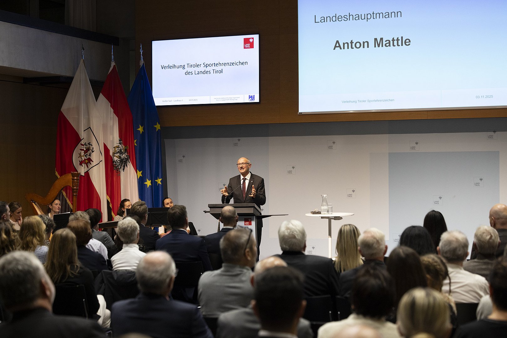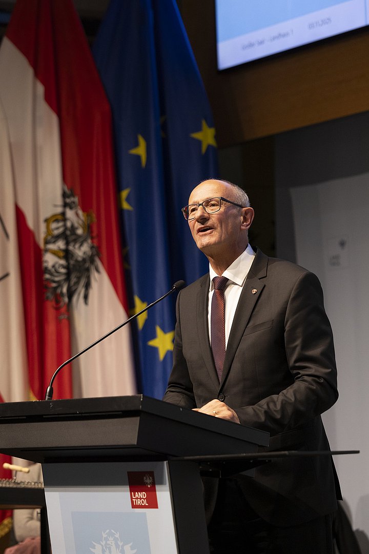 © Land Tirol/W9 Mario WebhoferFestakt Verleihung Tiroler Sportehrenzeichen 03. November 2025 - Ansprache Landeshauptmann Anton Mattle© Land Tirol/W9 Mario Webhofer