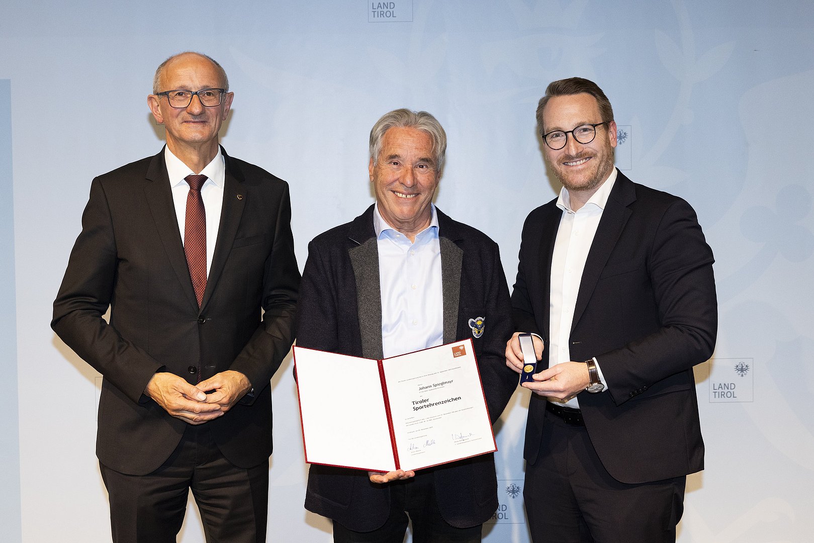 © Land Tirol/W9 Mario Webhoferv.l.n.r.: LH Anton Mattle, Johann Spieglmayr, 1.LH-Stv. Philip Wohlgemuth© Land Tirol/W9 Mario Webhofer