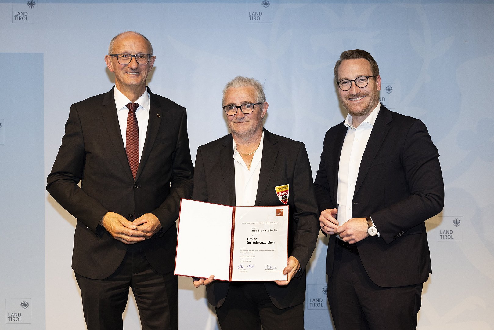 Am 03. November 2025 fand die Verleihung der Tiroler Sportehrenzeichen, der Tiroler Sportehrennadel in Gold und der Tiroler Sportehrennadel in Gold mit Brillant durch Landeshauptmann Anton Mattle und 1. LH-Stv. Philip Wohlgemuth im Großen Saal des Landhauses statt.
