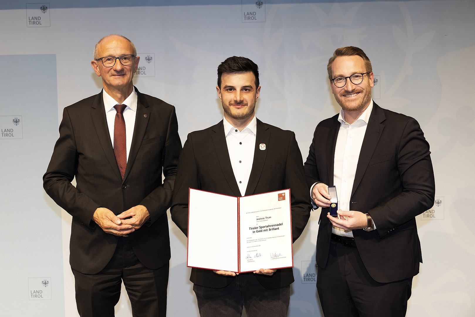 © Land Tirol/W9 Mario Webhoferv.l.n.r.: LH Anton Mattle, Andreas Thum, 1.LH-Stv. Philip Wohlgemuth© Land Tirol/W9 Mario Webhofer