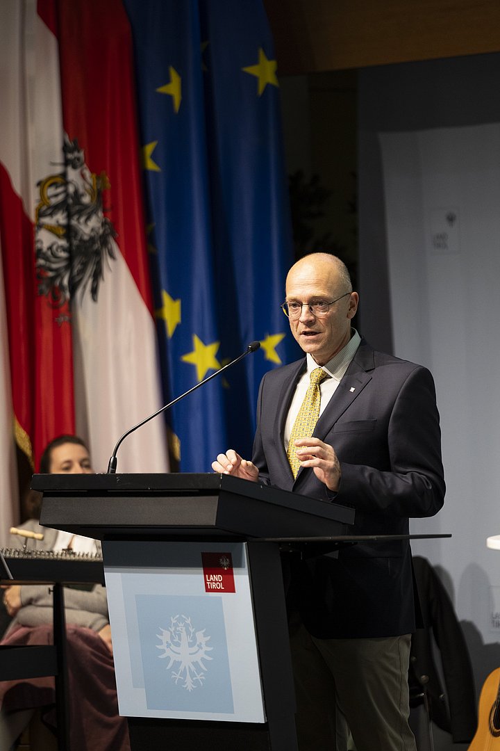 © Land Tirol/W9 Mario WebhoferFestakt Verleihung Tiroler Sportehrenzeichen 03. November 2025 - Ansprache Abteilungsvorständin-Stellvertreter Christoph Höbenreich© Land Tirol/W9 Mario Webhofer