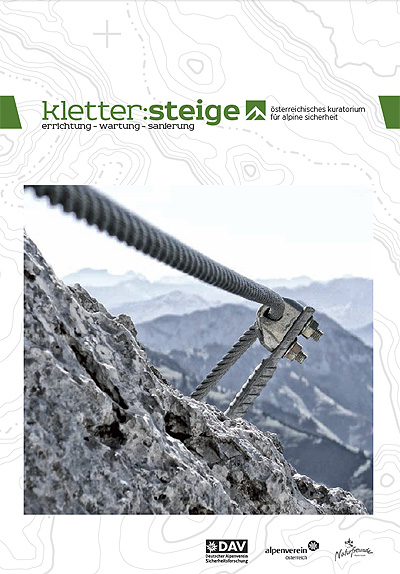 Die Neuauflage des Klettersteig-Handbuches (Inhalt) mit Empfehlungen zur Errichtung, Wartung und Sanierung von Klettersteigen und drahtseilgesicherten Wegen ist erhältlich beim