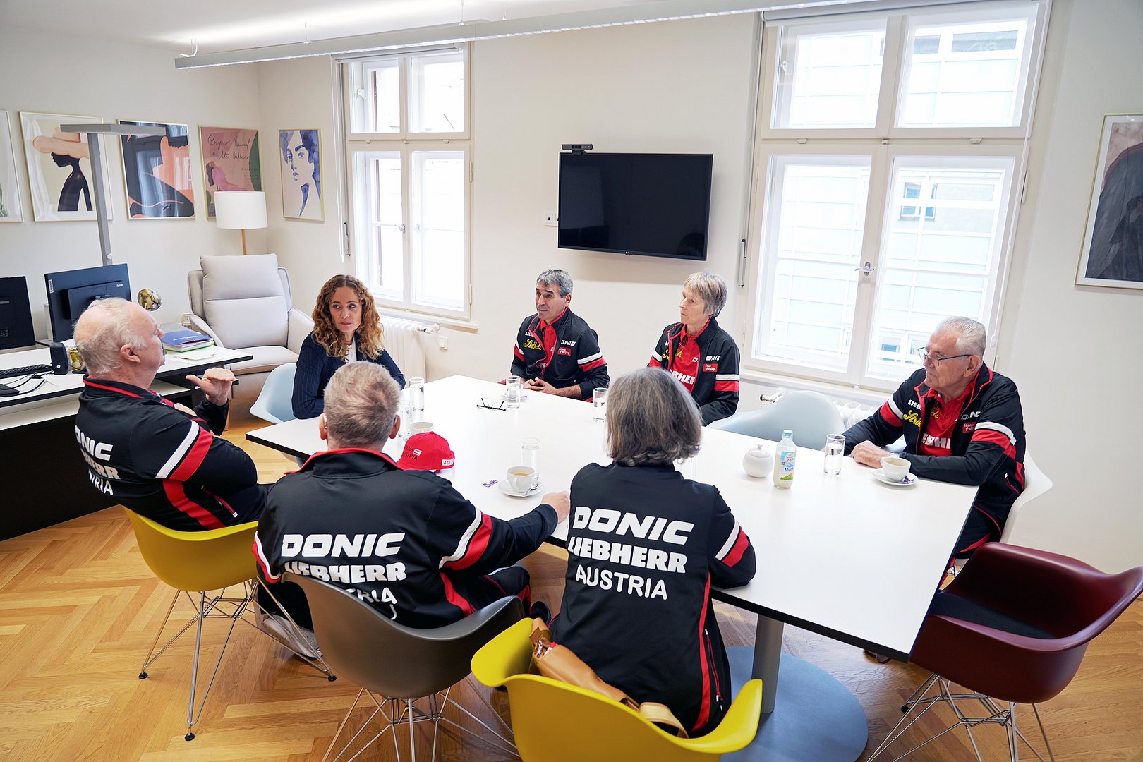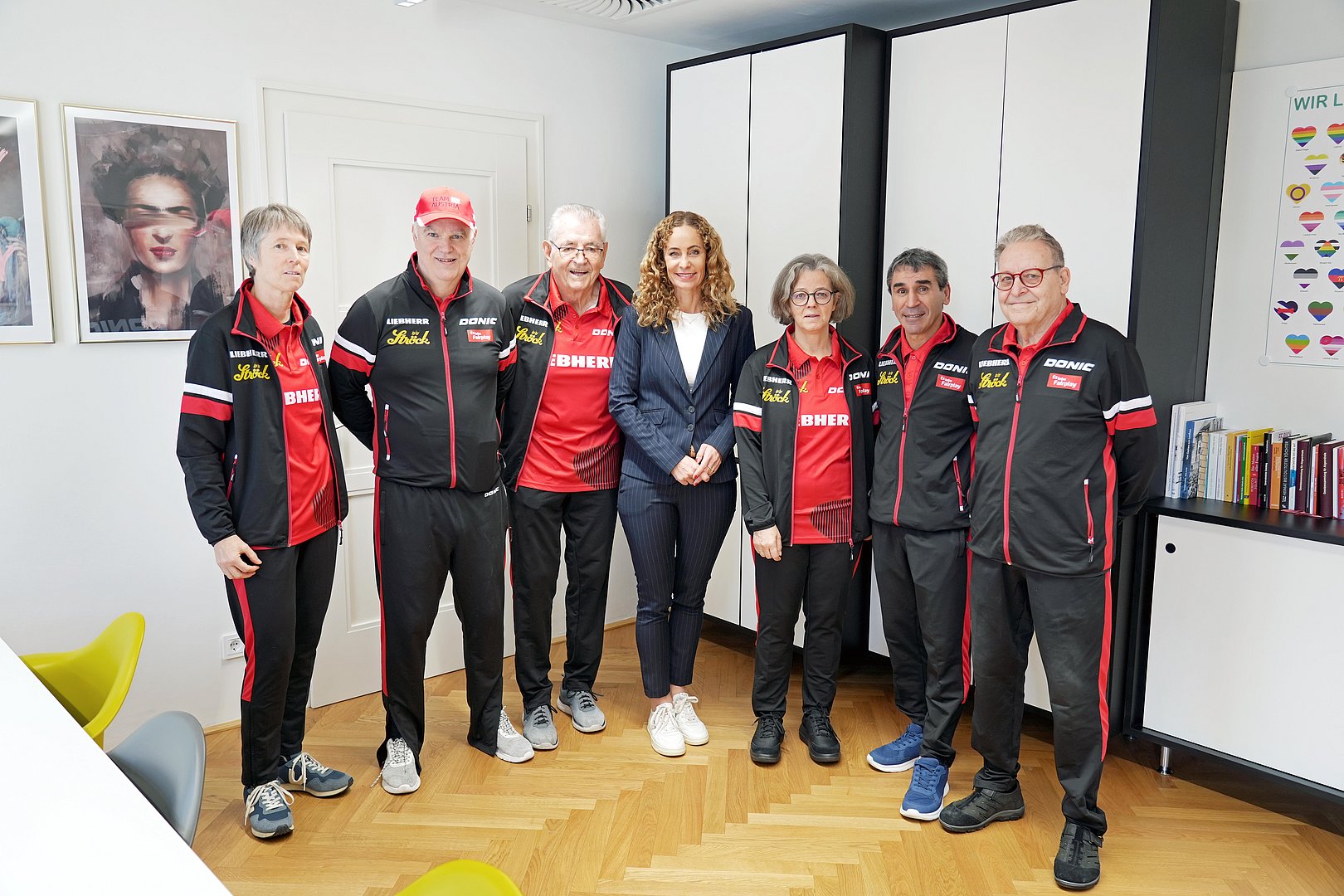 Gestern, Donnerstag, empfing Inklusionslandesrätin Eva Pawlata die Tiroler MedaillengewinnerInnen der World Parkinson’s Table Tennis Championships – der Parkinson-Tischtennis-Weltmeisterschaft – der ITTF. Diese fand Ende Oktober im Maizières-lès-Metz (Frankreich) statt. Insgesamt traten über 130 SportlerInnen aus 26 Nationen an. Das Team Österreich ging mit fünf Damen und sieben Herren an den Start und konnte insgesamt fünf WM-Titel, vier Vize-Titel und vier Bronze-Medaillen erringen. Gleich zwei WM-Titel holte dabei die Tirolerin Verena Höllrigl – einmal mit der Tiroler Teamkollegin Barbara Romen-Schneider (Damen-Doppel Klasse 3) und einmal mit Bernhard Bucher (Mixed-Doppel Klasse 3). Zweimal Bronze ging ebenfalls nach Tirol: mit Romen-Schneider im Einzel (Damen-Einzel Klasse 3) und gemeinsam mit Kemal Kara (Mixed-Doppel Klasse 3).