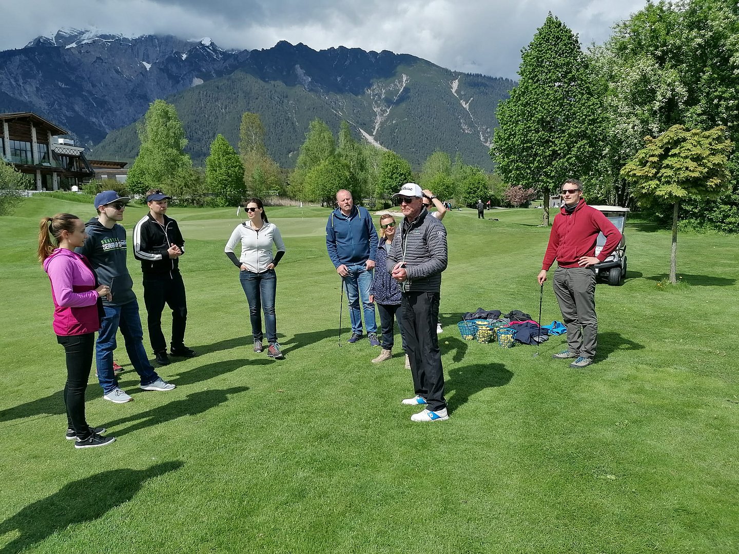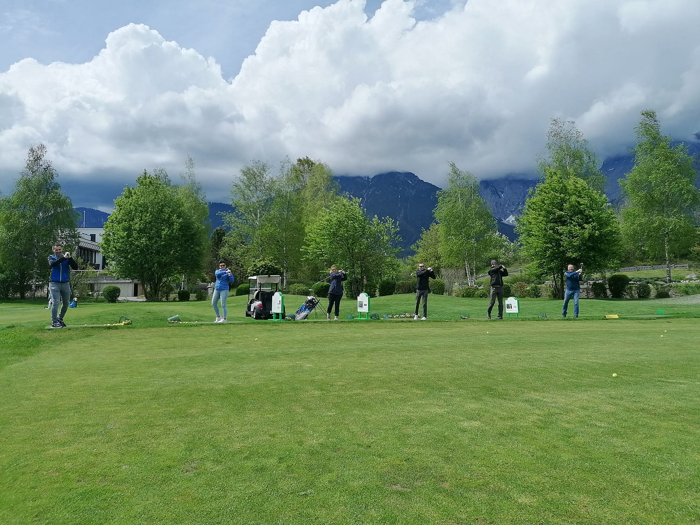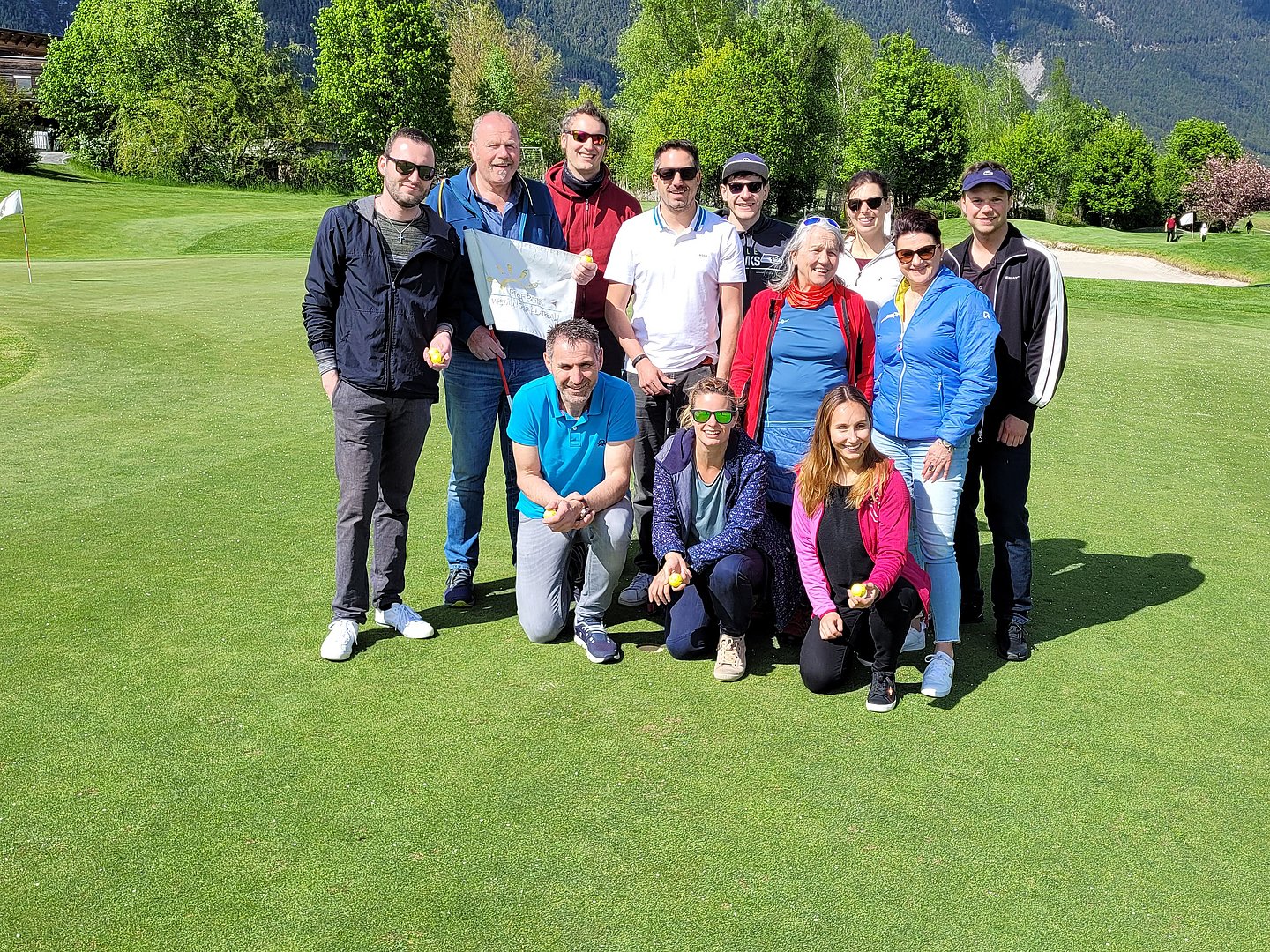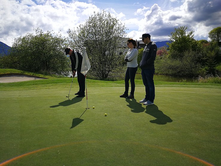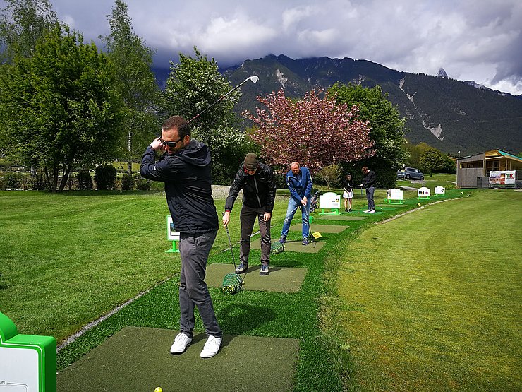 Im Veranstaltungsprogramm der Sportvereinigung findet man immer wieder Sportarten, die einfach zum Kennenlernen animieren sollen. So fand auch heuer wieder unser beliebter Golf-Schnupperkurs – diesmal in der Golf-Schule am Mieminger Plateau – statt. Pünktlich um 13.45 Uhr trafen sich 12 Teilnehmer*innen am Golfplatz in Mieming, wo Kugelschreiber, Notizblöcke und Akten gegen Golfschläger und Golfbälle eingetauscht wurden. Unter der Anleitung der Golfpros wurde uns als ersten Schritt die verschiedensten Typen von Golfschlägern und deren Anwendung erklärt, bevor es zur korrekten Schlägerhaltung, das richtige Stehen zum Golfball und den perfekten Golfschwung ging. Am Übungspatz wurde versucht, das Erlernte umzusetzen. Manchmal gelang es sogar, den Golfball an die 100 Meter abzuschlagen. Beim Putten am Green ist viel Gefühl gefragt und da hatte dann schlussendlich jeder von uns sein Erfolgserlebnis, indem der Golfball das „berühmte“ Loch fand. Zu guter Letzt gab es noch Gelegenheit bei einem Mannschafts-Wettkampf sein Können zu zeigen. Bei den Siegern, die übrigens je eine Flasche Wein aus dem Eigenanbau erhielten, konnte man durchaus ein gewisses Talent erkennen. Der unterhaltsame Nachmittag klang schlussendlich auf der Terrasse des Restaurant Greenvieh bei einem Getränk aus. Ein herzlicher Dank gebührt dem Geschäftsleiter, Simon Knabl, (Golfprofi und gleichzeitig Golflehrer) für die super Gestaltung des Golf-Schnupperkurses. Gemeinsam mit dem Golfpro Rupert ist es ihm gelungen, uns den Spaß am Golfsport zu vermitteln.