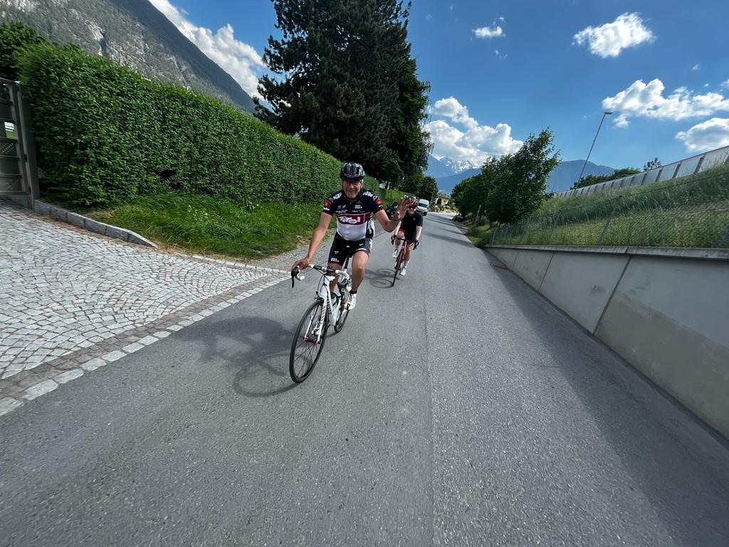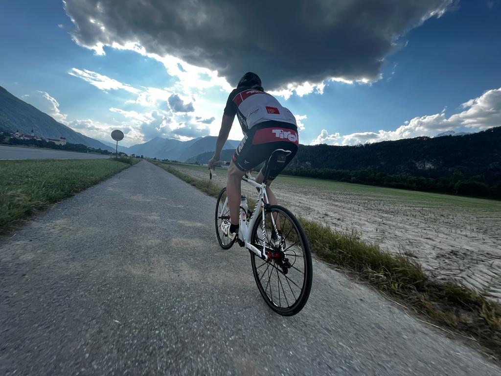 Zum ersten Mal luden wir zu einer geführten Rennradtour ein. Dietmar Spiss führte trotz mangelnder Anmeldung zwei hochmotivierte Teilnehmer um den Tschirgant. Das Wetter war perfekt und die drei Rennradfahrer starteten pünktlich um 14:10 Uhr vom Sportplatz Mötz in Richtung Imst los. Ein komfortables Fahrtempo wurde angepasst und somit erreichte man eine Durchschnittsgeschwindigkeit von ca. 23 km/h.