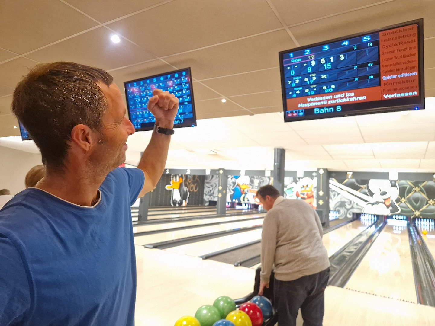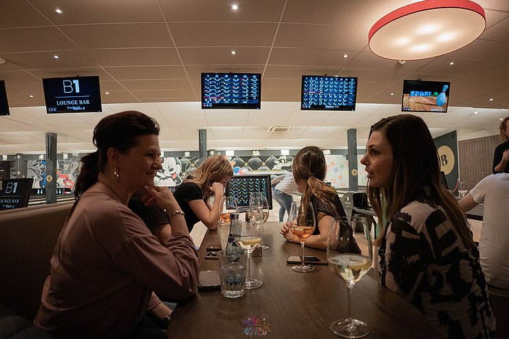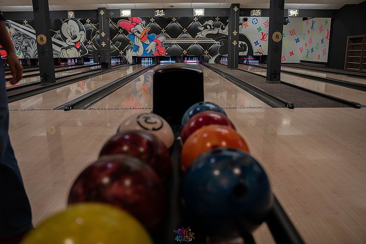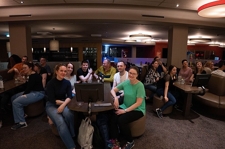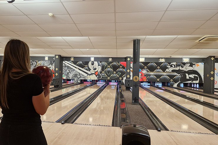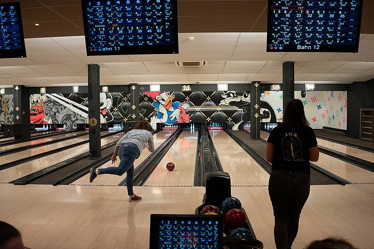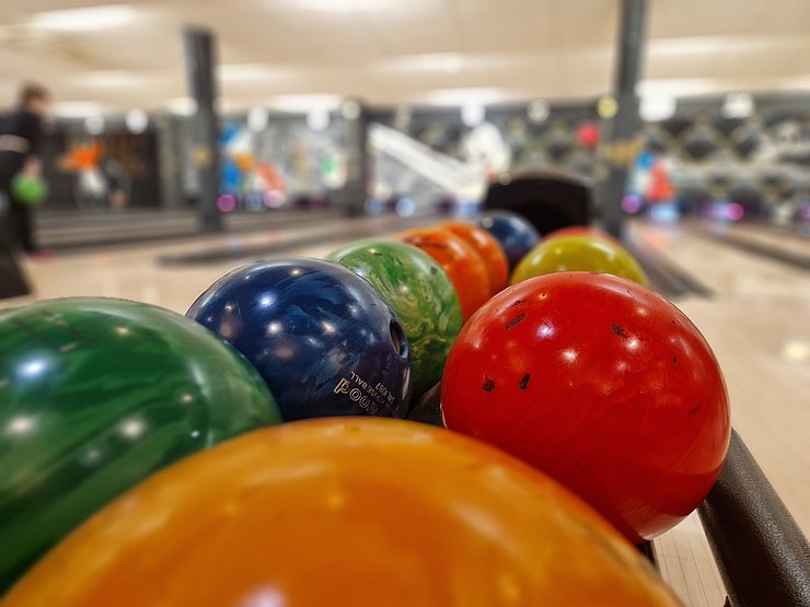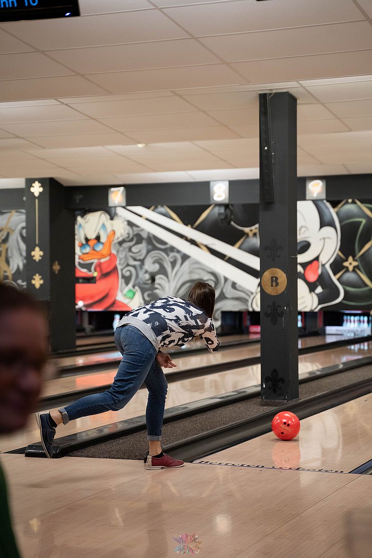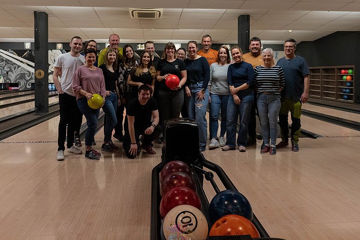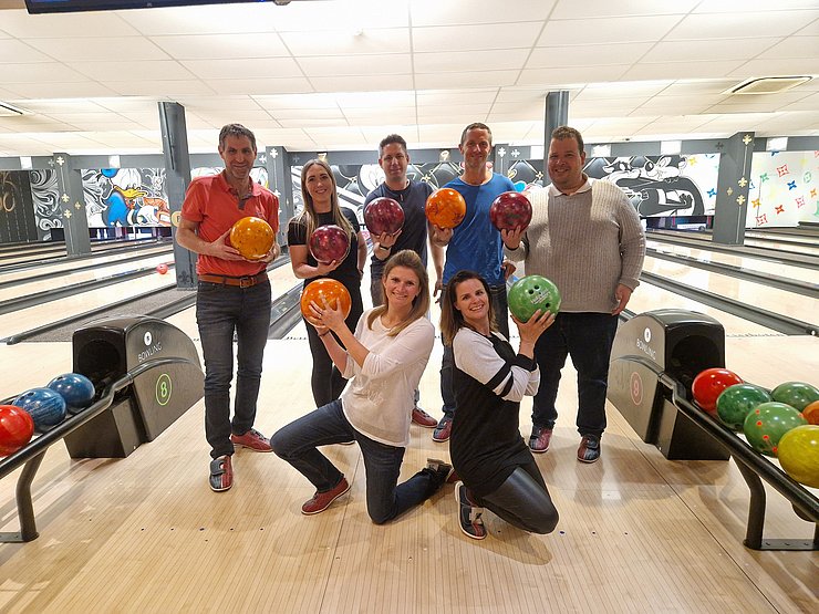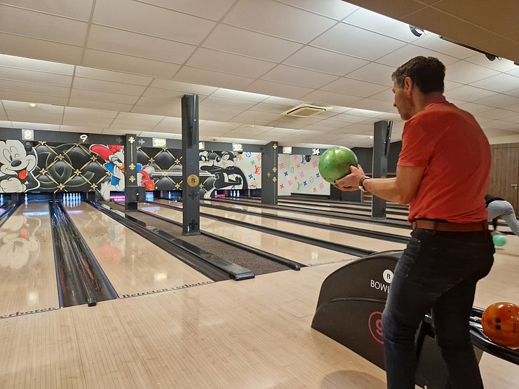 Dann wurden die beiden Teams zur Abwechslung neu gemischt und wir spielten weiter. Zum Ende hin wurde es nochmal lustig: Ein paar von uns hatten die Bowling-Kugeln bis dorthin falsch gehalten - wieder was gelernt ;-)