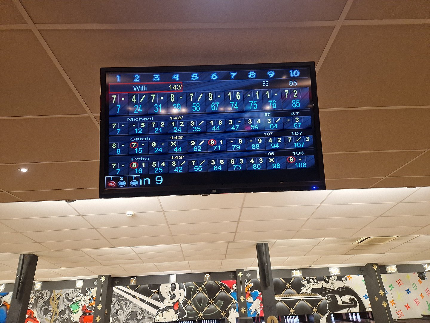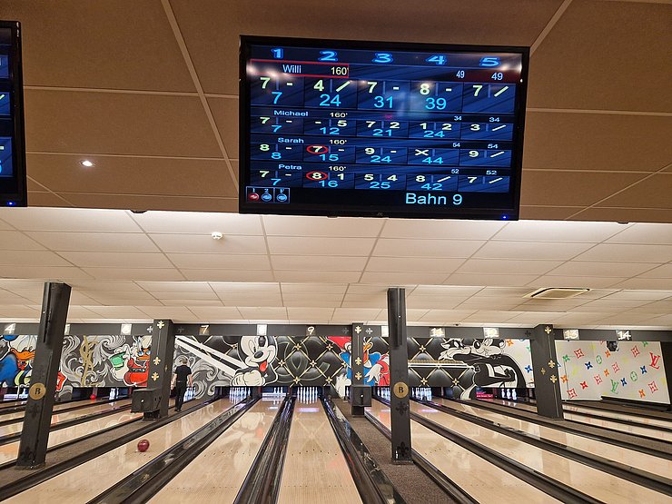 Am Mittwoch, 10. April 2024 waren wir nur zu siebt, was der Stimmung keinen Abbruch tat. Verteilt auf 2 Bahnen rollten wir die Kugeln durch den Abend und bekamen das eine oder andere Mal auch Hinweise von Spielern nebenan, damit wir das Display besser verstanden.