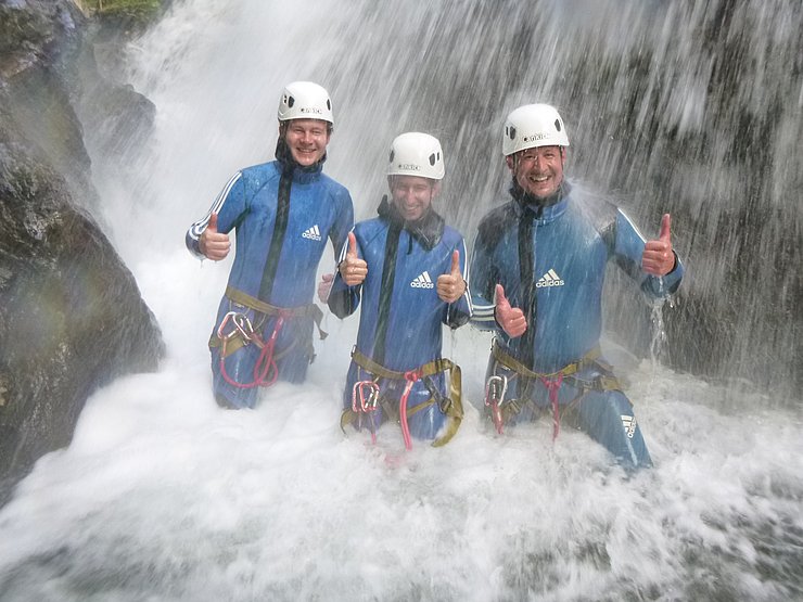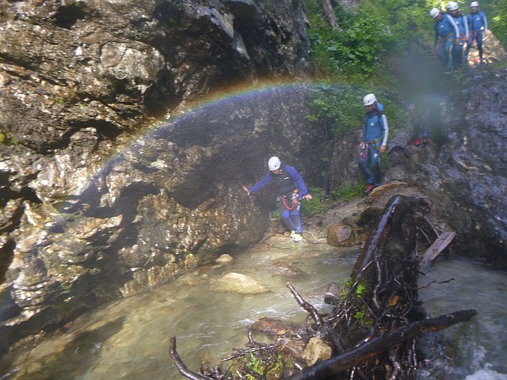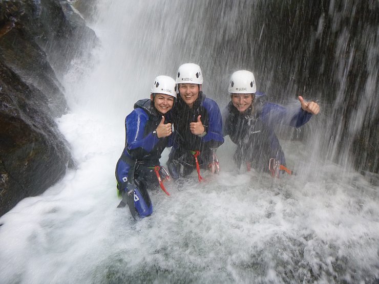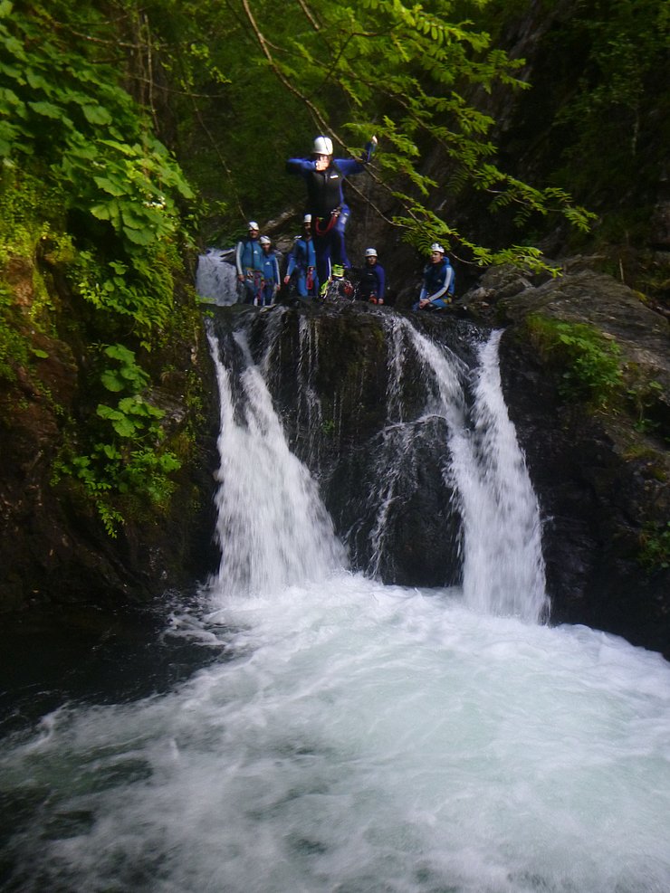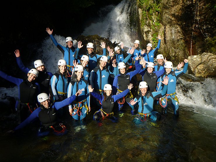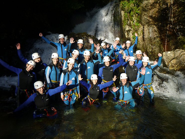 Gemeinsam mit unserem Partner „Cankick“ ist es uns auch heuer wieder gelungen ein interessantes Angebot zu schaffen. Dieses Mal haben wir uns für eine actionreiche Canyoning-Tour entschieden. Wir werden dabei von einem staatlich geprüfte Canyoning Guide geführt. Dieser wird uns bei der ersten Abseilstelle, von einer Brücke und frei hängend, in die Schlucht abseilen. Anschließend geht es vorbei an wunderschönen herabfallenden Wasserfällen, es wird enger und das Rauschen der Wasserfälle hallt durch die Schlucht. Weiter geht es über mehrere Abseilstellen, Wasserrutschen und einigen Sprüngen. Das tolle an dieser Tour: wem das Springen nicht liegt, der kann diese Stellen auch einfach umgehen.