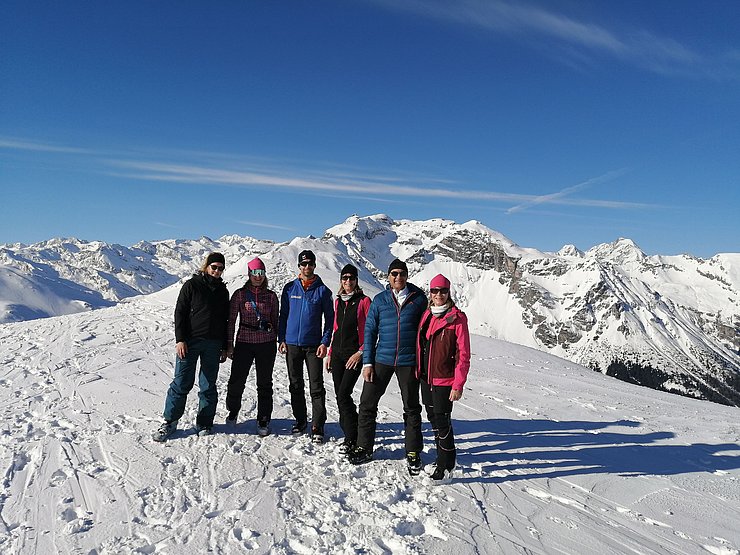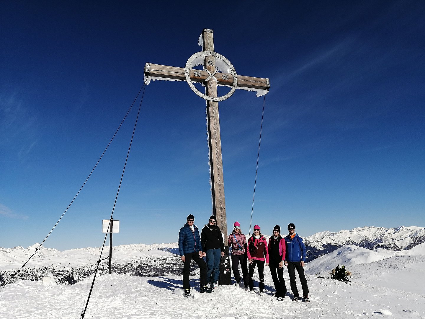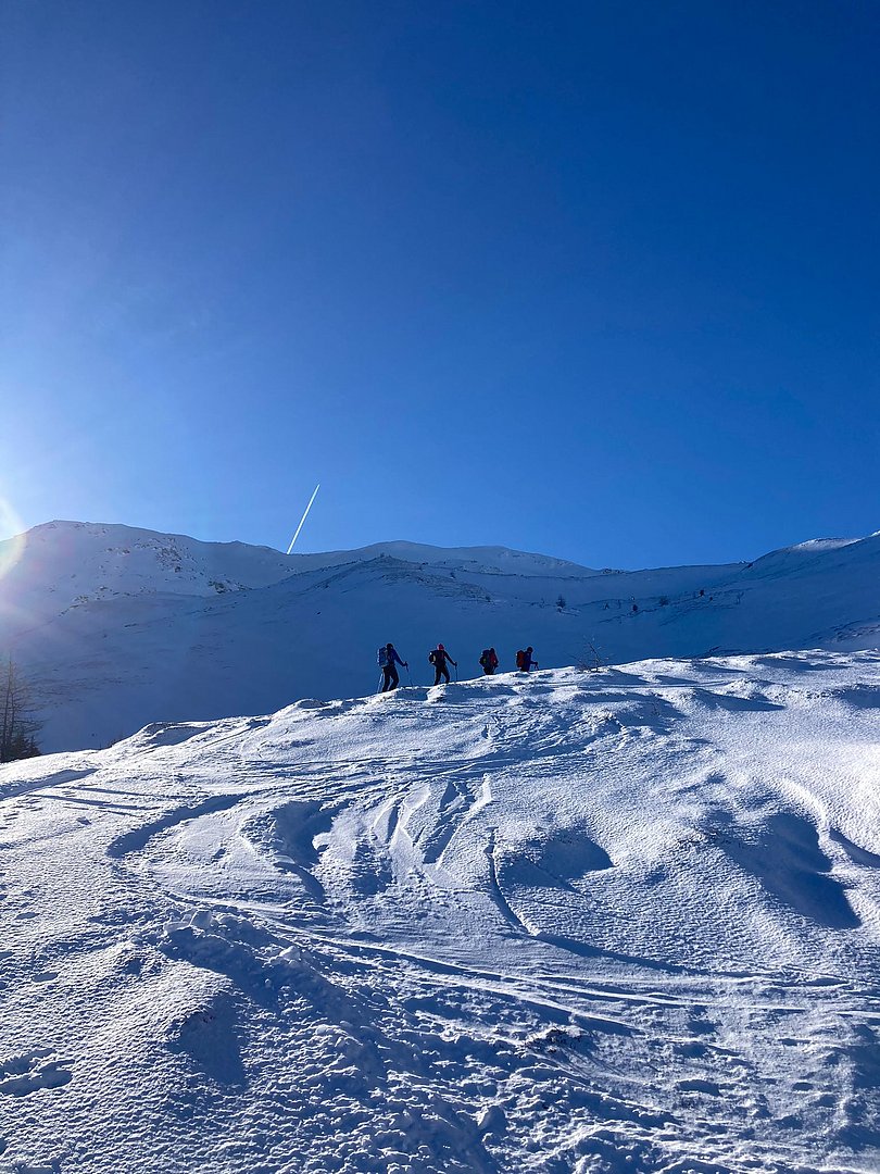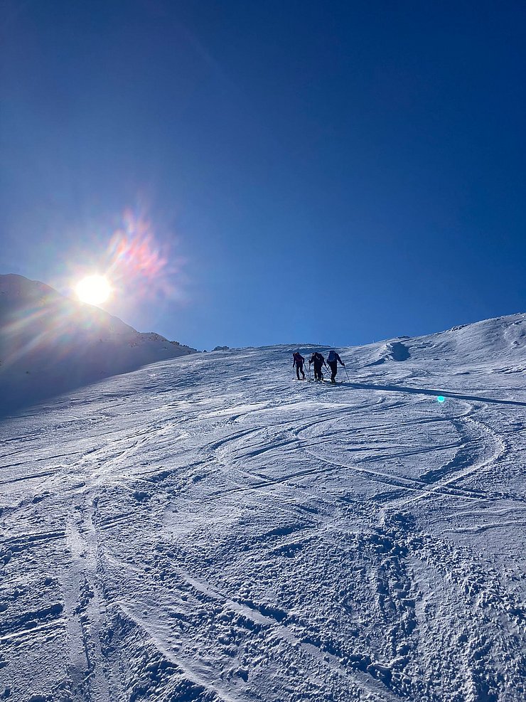 Die geführte Tagesskitour auf den Hohen Lorenzenberg im Obernbergtal konnte bei durchwachsenen Schneeverhältnissen, dafür aber herrlichem Frühlingswetter am 28.01.2024 stattfinden. Aufgrund der überschaubaren Gruppengröße kamen die Teilnehmer*innen Kurt, Daniela, Barbara, Ilse und ich selbst in den Genuss eines Bergführer-Betreuungsschlüssels von 1:5, welcher von Marco von Stubai Alpin erfüllt wurde. Gleich nach dem Start von Almi’s Berghotel aus wurde deutlich, dass in unserer Gruppe sowohl „Bergläufer*innen“ als auch „Genussgeher*innen“ zusammenkommen – trotzdem konnte ein für alle passendes Tempo für den Aufstieg gefunden werden. Durch das Fradertal waren im unteren Teil gleich mehrere Bächlein zu überwinden und auch ziemlich bald die Harscheisen auszupacken. Da der Schnee beim Aufstieg alles andere als vielversprechend für eine genussvolle Abfahrt war, wurde am Gipfel nach einer gemütlichen Pause in der Sonne bei Windstille (!), einem beeindruckenden Rundumblick und einem Gipfelschnapsl kurzerhand entschieden, aus der Tour eine Überschreitung zu machen und zum Obernberger See abzufahren. Und da war dann sogar die Abfahrt ein unerwartetes Vergnügen. Ganz kurz, aber wirklich nur ganz kurz, wurde diese Entscheidung bei einem Blick auf den Skibusplan beim Obernberger See bereut - den vorigen Bus hatten wir gerade verpasst und der nächste würde erst in vier Stunden fahren. Daher gab es zum Abschluss noch einen Fußmarsch zurück zu Almi’s Berghotel, wo wir die Tour beim gemeinsamen Einkehrschwung ausklingen lassen konnten und auch ganz motiviert bereits Ideen für eventuelle weitere Skitouren gesammelt haben.