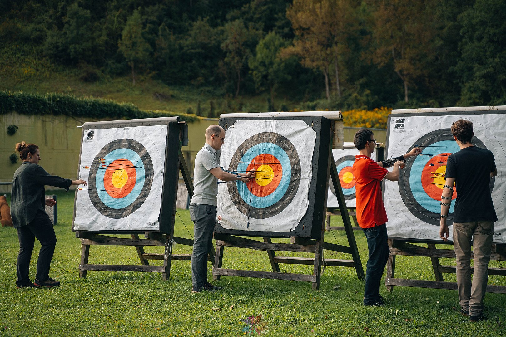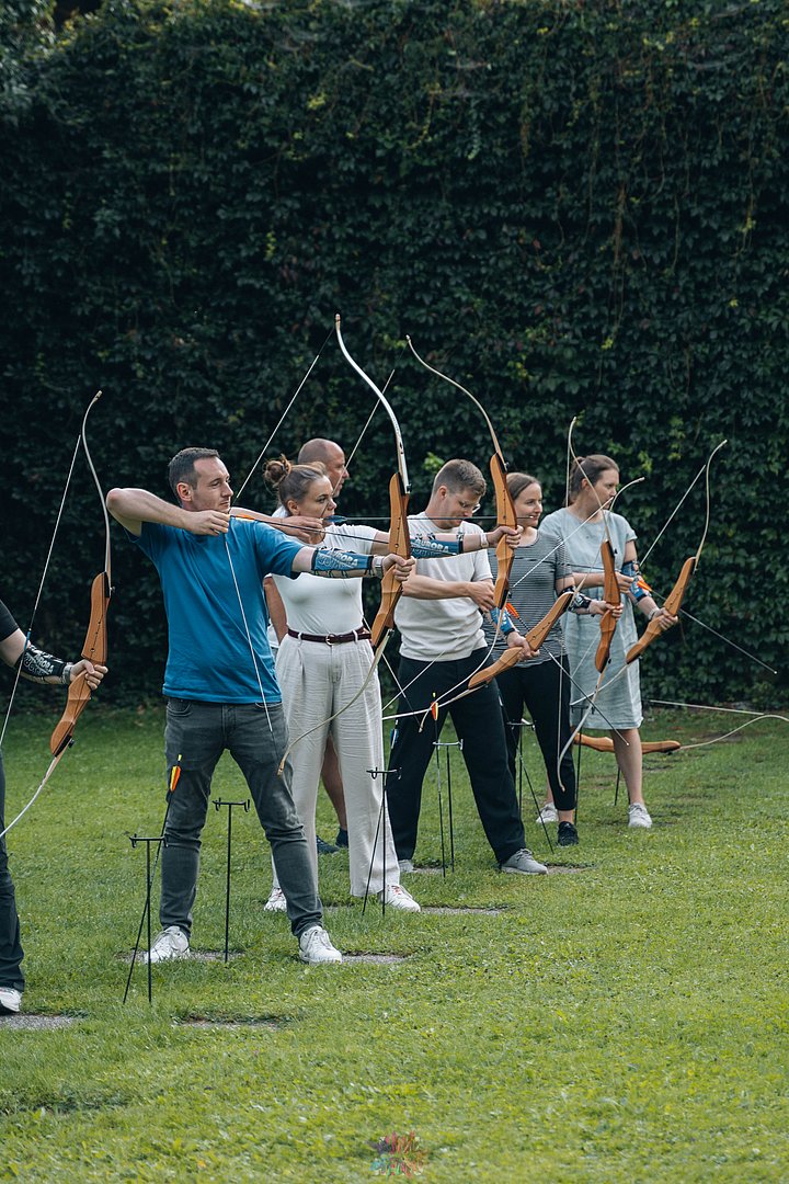 Die erste Hälfte der Zeit wurde auf fixe Zielscheiben geschossen, um ein Gefühl für die Zugspannung, das Flugverhalten der Pfeile und Treffsicherheit zu bekommen (10m-20m Entfernung). In der zweiten Hälfte wurde dann auf anspruchsvolle Tiernachbildungen gewechselt, welche vom kleinen Hasen (10m Entfernung) bis zum großen Bären oder Hirsch (50-60m Entfernung) reichten. Hier konnte man frei wählen, welcher Herausforderung man sich annahm, was durchaus den Wettbewerbsgeist untereinander weckte.