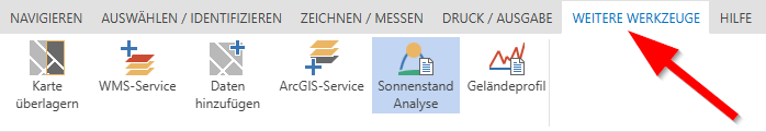 Im Menüpunkt WEITERE WERKZEUGE finden Sie das Modul ‘Sonnenstand Analyse’: