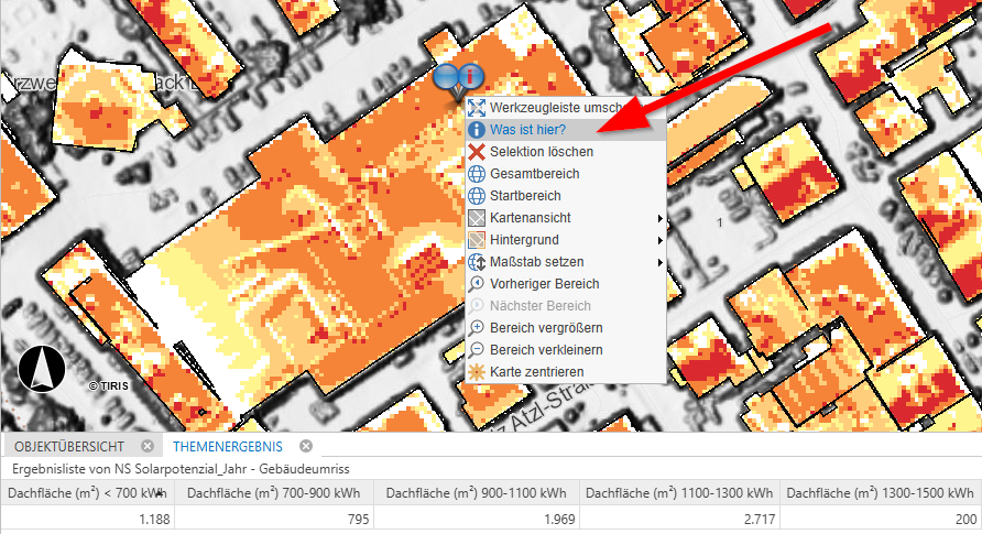 Solarpotenziale je Gebäude in tirisMaps