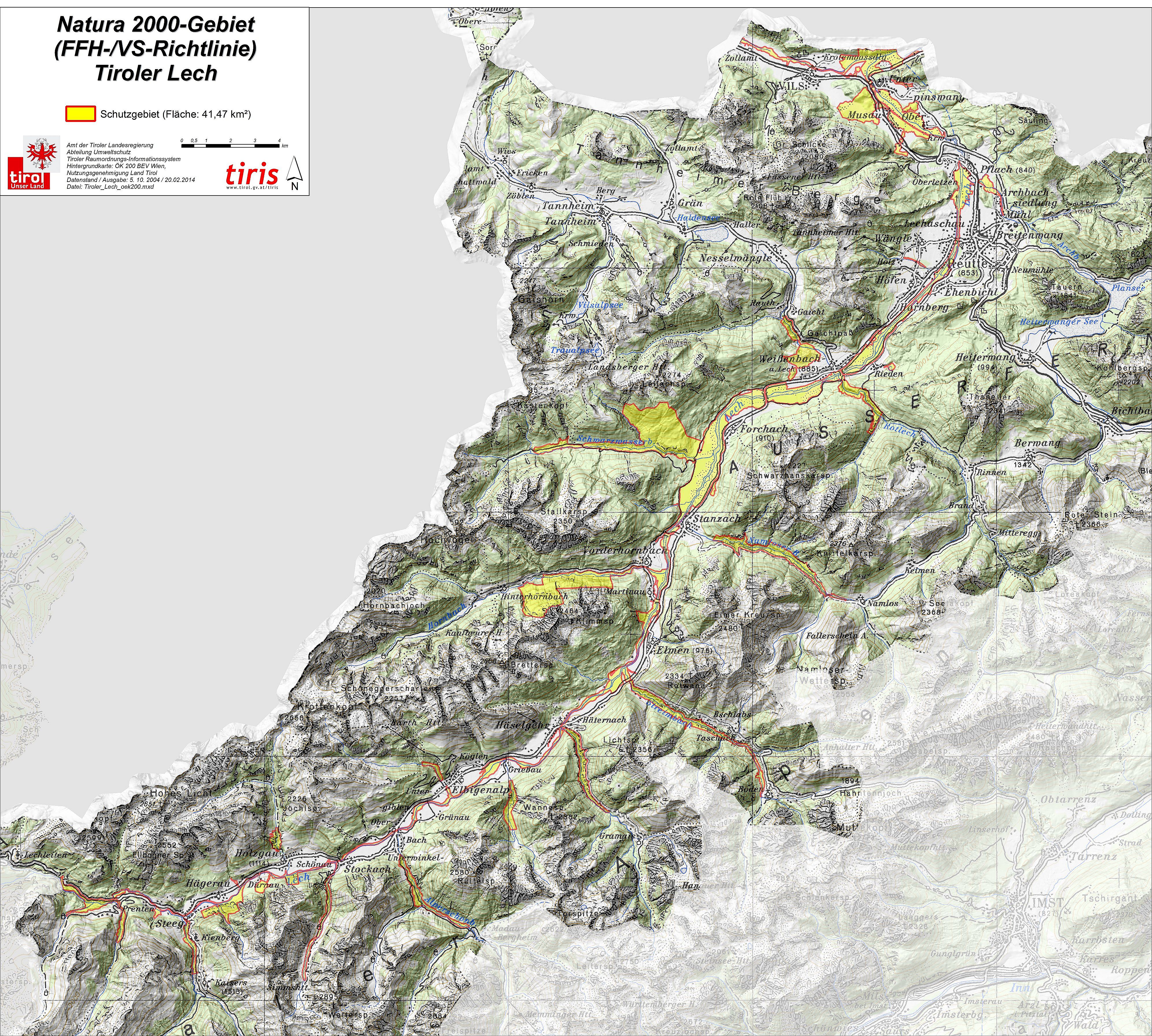 Naturpark, Natura2000 und Naturschutzgebiet Tiroler Lech (ÖK50)