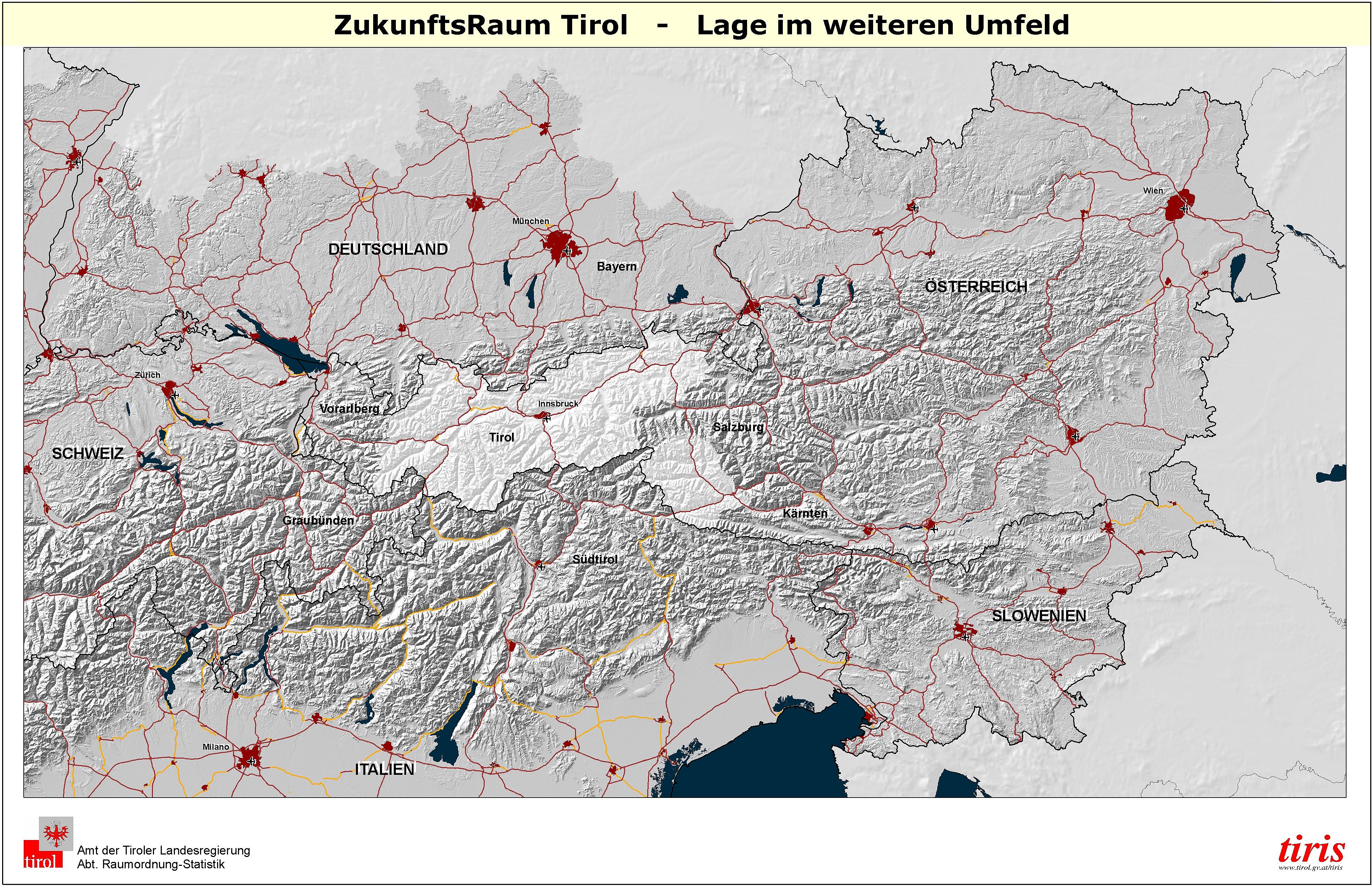 Zukunftsraum - Lage Tirol im weiteren Umfeld