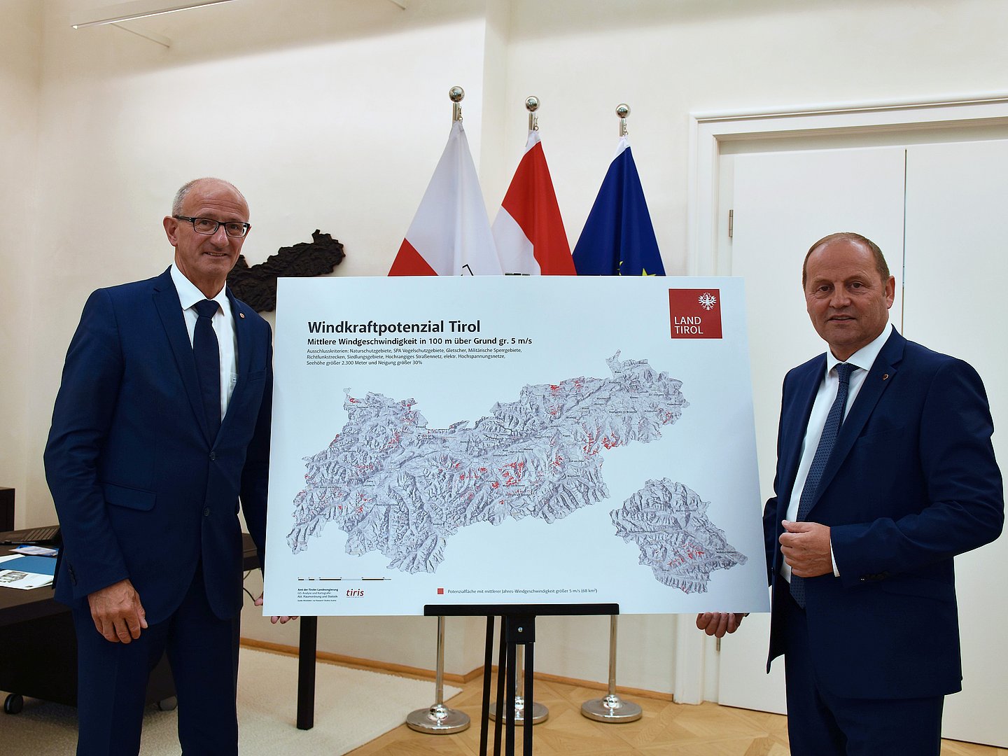 Das technisch und wirtschaftlich realisierbare Windkraftpotenzial in Tirol ist aufgrund des technologischen Fortschritts, der geänderten Förderkulisse und auch der großen Nachfrage nach erneuerbaren Energieträgern zuletzt deutlich gestiegen und liegt nunmehr bei 800 bis 1.200 Gigawattstunden. Theoretisch wären 140 bis 160 Windräder notwendig, um diese Energiemenge zu erzeugen. In der Praxis bemüht sich die Tiroler Landesregierung, um die ersten Windkraftanlagen in Tirol auf den Weg zu bringen. Grundlage dafür ist die vom Land Tirol in Auftrag gegebene Aktualisierung der Studie „Windenergiepotenzial in Tirol“ aus dem Jahr 2014.