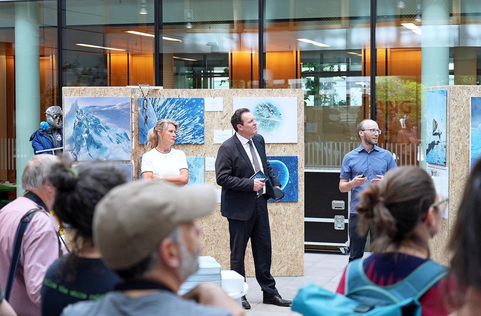 „2024 war laut Klimastatusbericht das wärmste Jahr in Österreich seit Beginn der Aufzeichnungen vor über 250 Jahren. Die Durchschnittstemperatur lag bereits drei Grad Celsius über dem Mittel der Jahre 1961 bis 1990“, so Klimaschutzlandesrat René Zumtobel, der weiter ausführt: „Zahlen wie diese sind oft schwer greifbar. Was wir aber deutlich spüren und sehen: Zahlreiche schwere Naturkatastrophen in der jüngeren Vergangenheit und den rasanten Rückgang der Gletscherflächen auf unseren Bergen. Diese Auswirkungen des Klimawandels werden immer mehr zur Belastungsprobe und Gefahr für uns Menschen, sie bringen den natürlichen Kreislauf in der Tier- und Pflanzenwelt aus dem Gleichgewicht. Für die notwendige Wiedererrichtung und Instandhaltung der Infrastruktur werden in Zukunft immer größere finanzielle Anstrengungen notwendig sein. Wir unterstützen diese Ausstellung vonseiten des Landes Tirol, weil es mir ein Anliegen ist, auf die Bedeutung der noch vorhandenen Eis- und Permafrostflächen auf der Erde aufmerksam zu machen und dadurch mehr und mehr Menschen von unseren gemeinsamen Anstrengungen für eine klimafitte Zukunft zu überzeugen.“