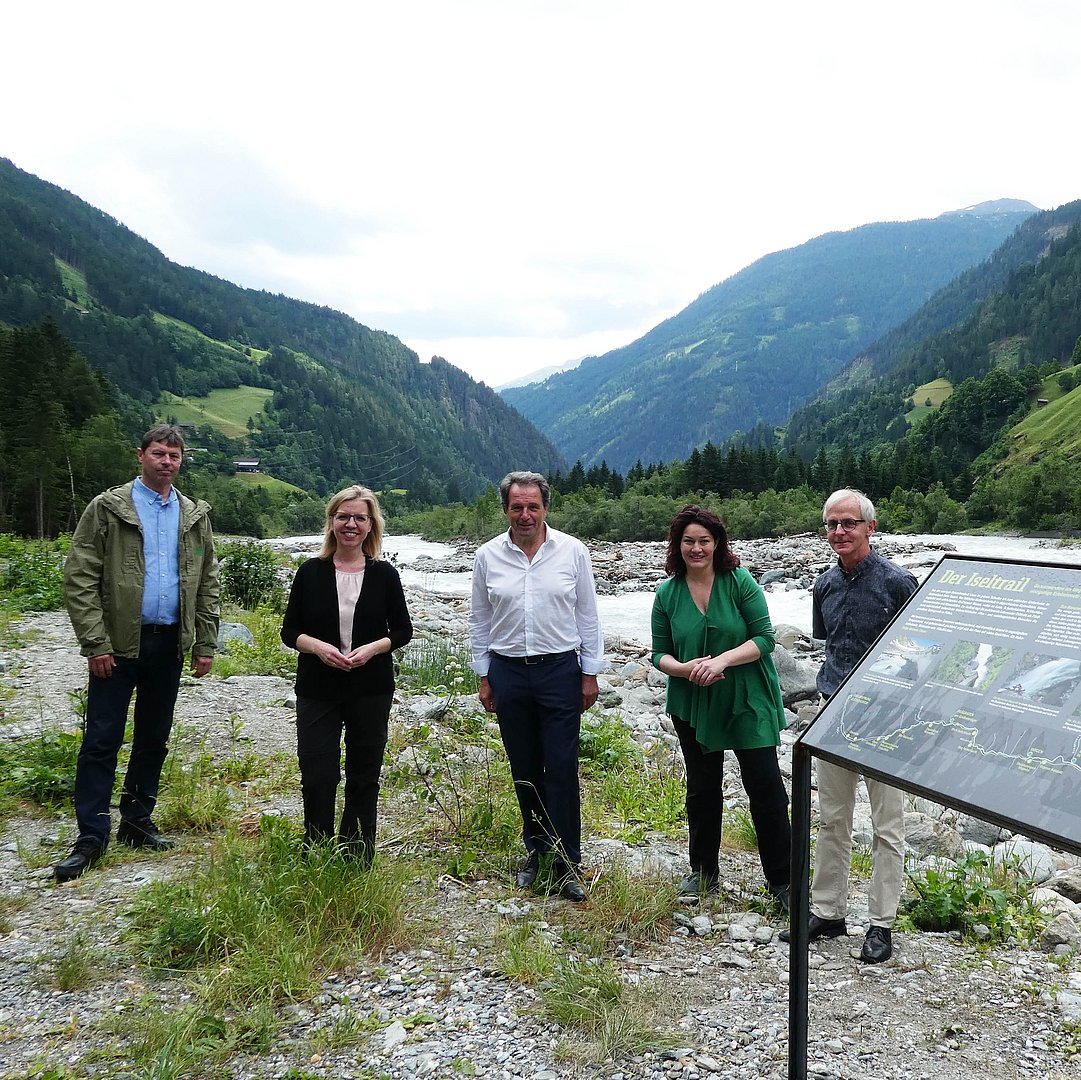 Neben dem Schutz von besonderen Naturräumen setzt das Land Tirol auch auf eine gezielte BesucherInnen-Lenkung in den Schutzgebieten, wodurch die Tiere, Pflanzen und Landschaftsteile erhalten und geschützt werden, aber auch für interessierte BesucherInnen zugänglich gemacht werden. „Dieses Ziel haben wir auch beim Iseltrail verfolgt und können bereits nach der ersten Sommersaison feststellen, dass das Konzept aufgegangen ist“, freut sich LHStvin Felipe. Seit 2020 verbindet der sogenannte Iseltrail in fünf Tagesetappen die Bezirkshauptstadt Lienz mit dem Ursprung der Isel in der Venedigergruppe. „Der Weitwanderweg lässt Erholungssuchende die Schönheit, Vielfalt und Wildheit des Gletscherflusses hautnah erleben. Er führt entlang der Isel, wo man der wunderbaren Vielfalt des Flussjuwels laufend begegnet: Weite Bereiche mit Sandbänken und beeindruckende Wasserfälle“, zeigt sich BMin Gewessler beim Lokalaugenschein begeistert.