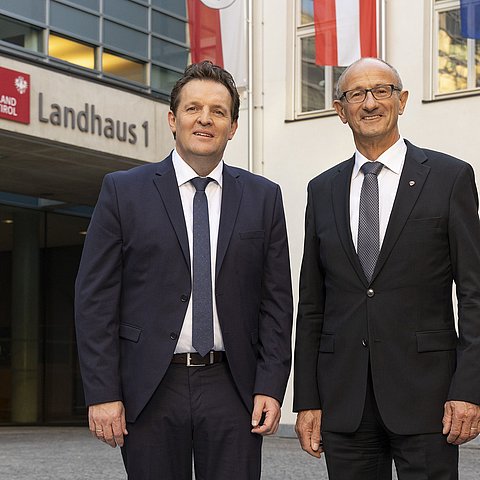 LHStv Josef Geisler und Klaus Niedertscheider, Leiter des Sachgebiets Hydrographie und Hydrologie beim Land Tirol