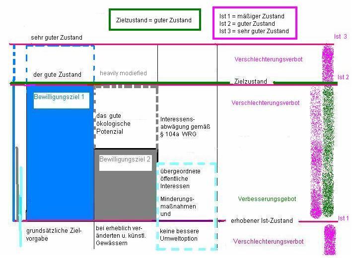 - ein guter ökologischer sowie chemischer Zustand für die natürlichen Oberflächengewässer,